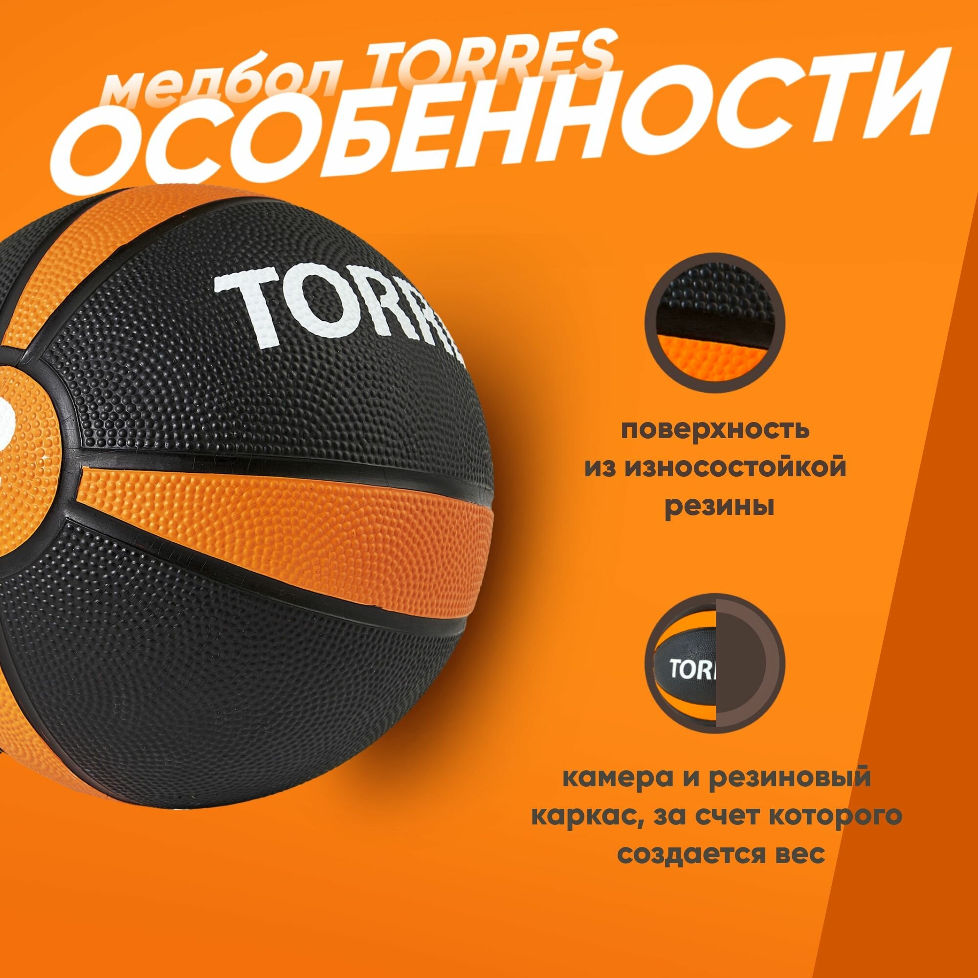 Медбол TORRES AL00222, 2 кг., черно-оранжево-белый информация: