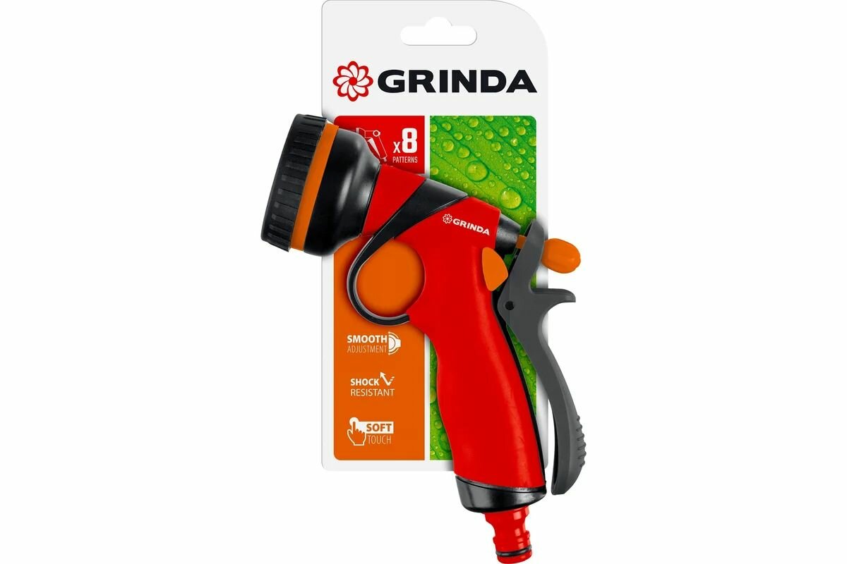 10 цен на Поливочный пистолет GRINDA T-8C, 8 режимов, курок сзади, пластиковый с TPR (8-427183)