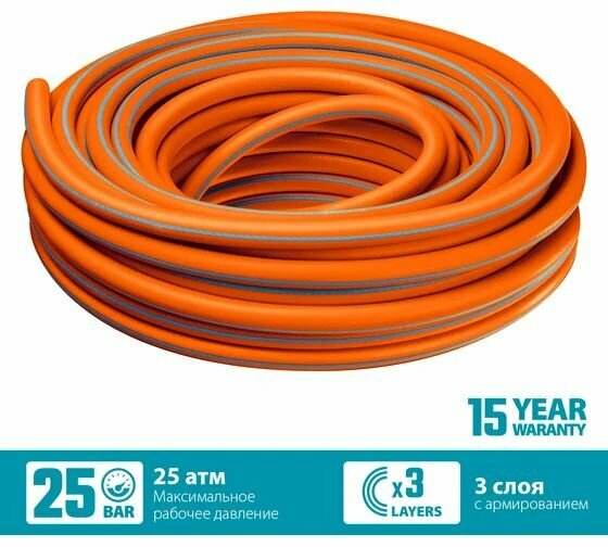 GRINDA CLASSIC 1", 25 м, 15 атм, трёхслойный поливочный шланг, армированный