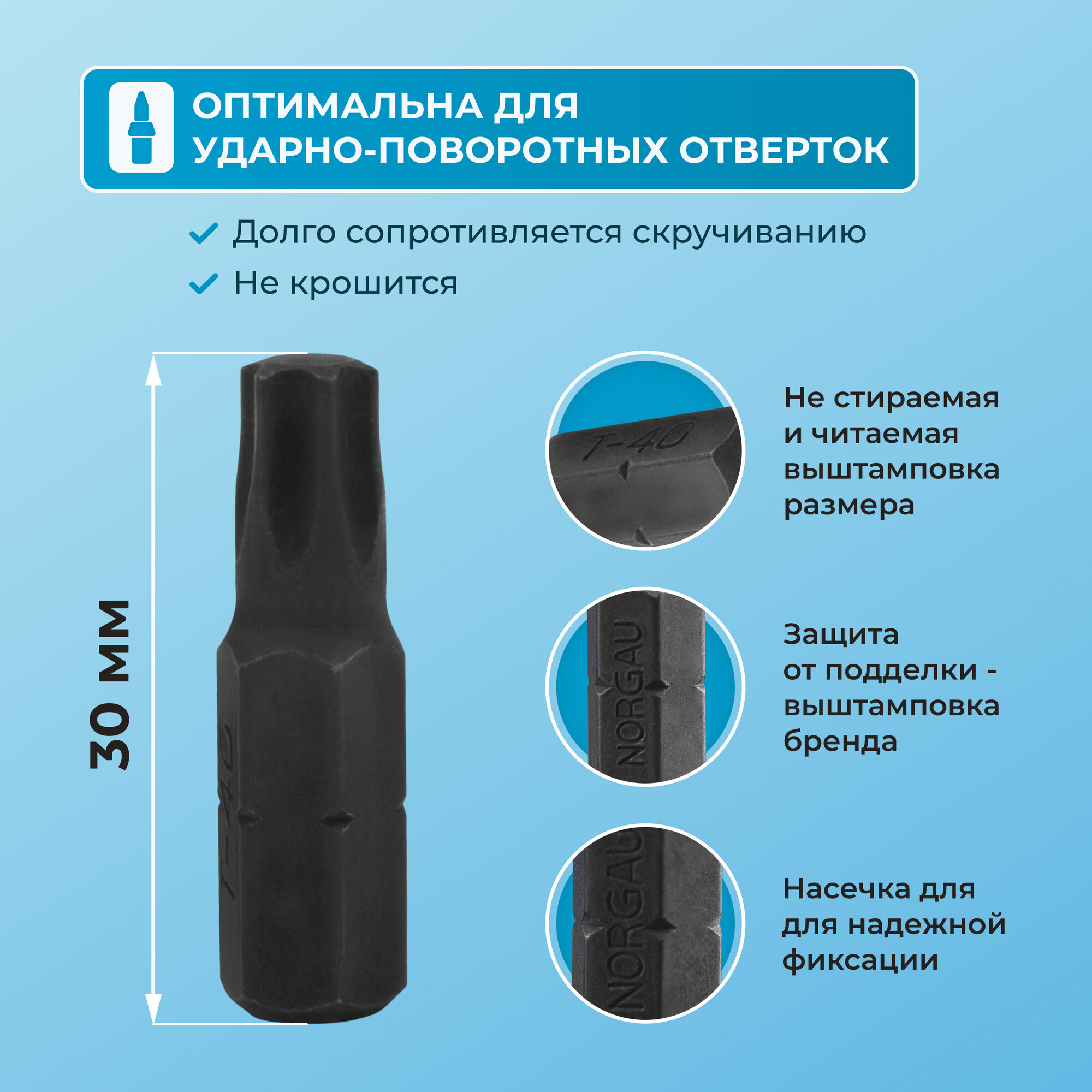 Отзывы на Бита ударная Torx Т40 NORGAU Industrial из высокопрочной SiMoV стали S2, для ударной отвертки с шестигранником 5/16"