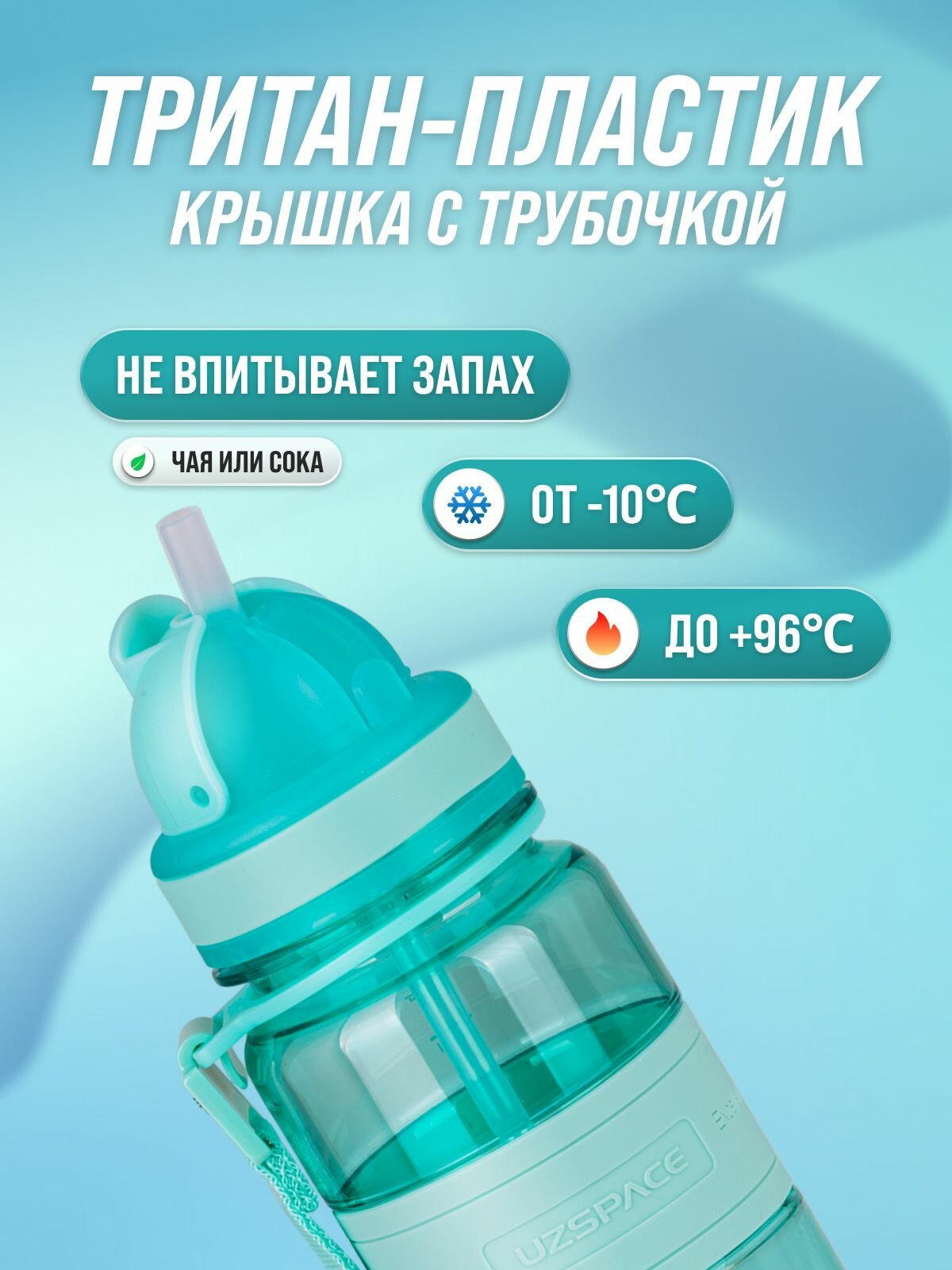 Отзывы на Бутылка для воды спортивная UZSPACE из Тритана, бирюзовая прозрачная, 350 мл, с трубочкой, герметичная крышка, BPA Free, для спорта и фитнеса, детская в школу