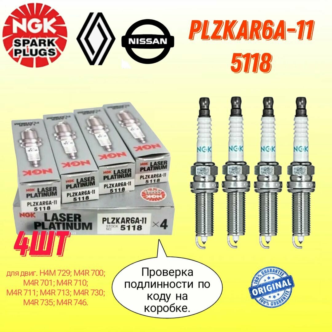 Свечи зажигания 4ШТ платиновые NGK LASER PLATINUM 5118 (PLZKAR6A-11), Япония (NISSAN, RENAULT group), 224012331r информация: