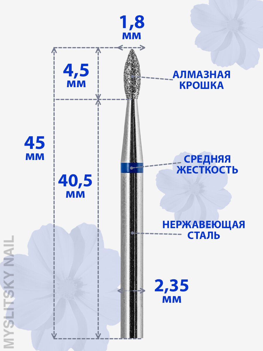 Владмива Фреза для маникюра и педикюра алмазная 806 104 257 524 018 Средняя синяя пламя (5 шт) 579 ₽