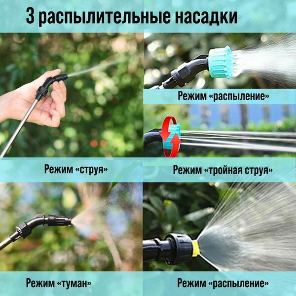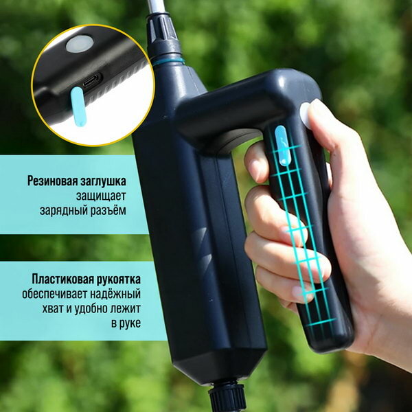 Отзывы на Опрыскиватель аккумуляторный 7.4 В, 2.4 Ач, Li-on, 0.8 л/мин, 2 насадки, шланг 5 м