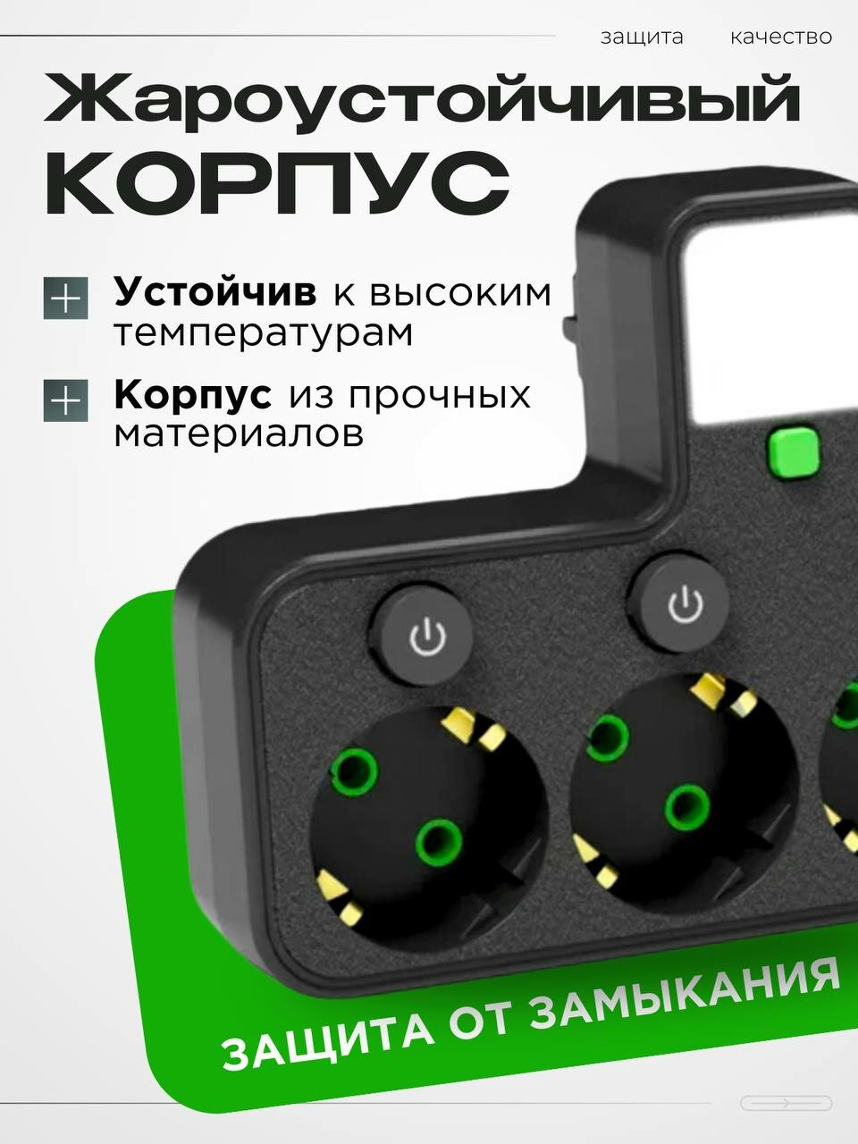 10 цен на Тройник-разветвитель MANSTOR, 3 розетки, 2 USB, Type-C, с подсветкой, черный