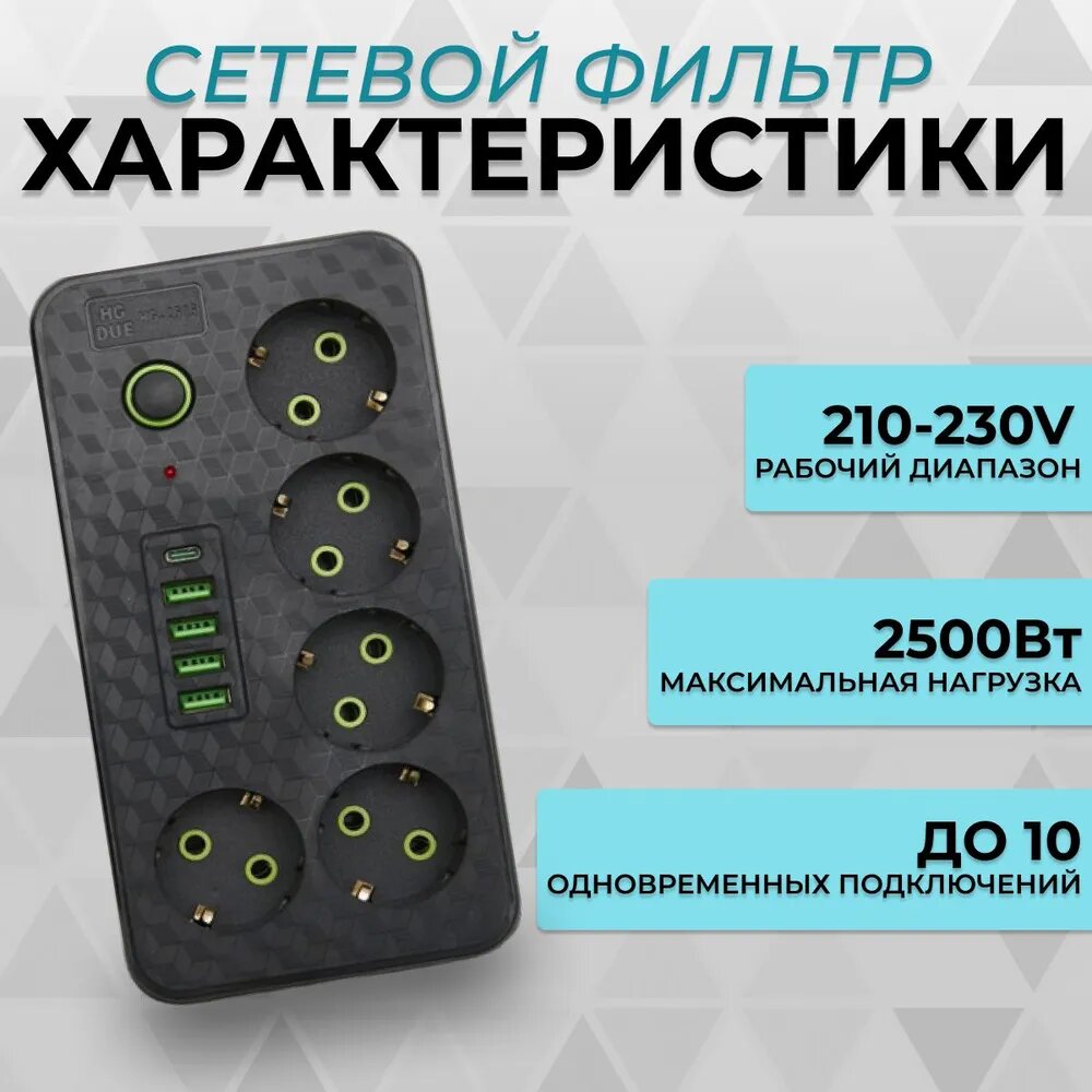 Удлинитель - сетевой фильтр с 4 USB и 1 type-C 2503 849 ₽