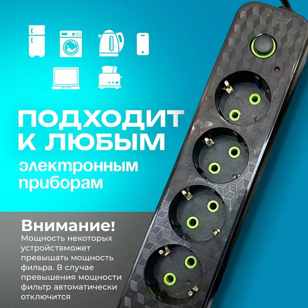 10 цен на Сетевой фильтр, удлинитель 4 розетки, 2 USB, 1 Type-C, черный 3 м