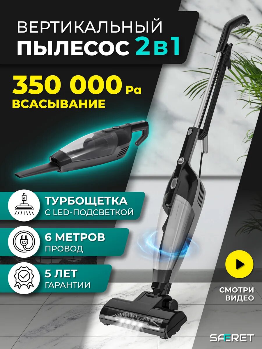 Вертикальный пылесос проводной с турбо щеткой и подсветкой информация: