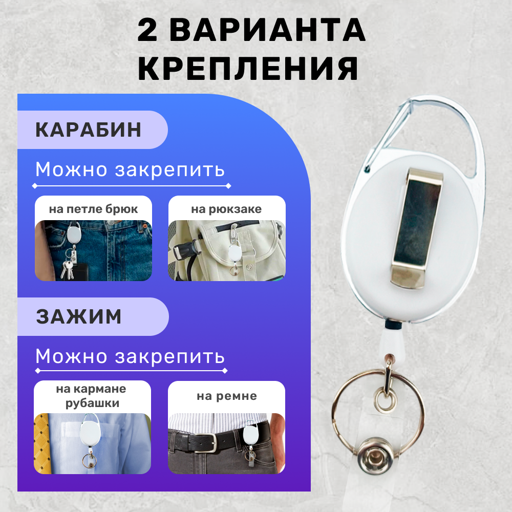 Брелок ретрактор с карабином, серебряный 284 ₽