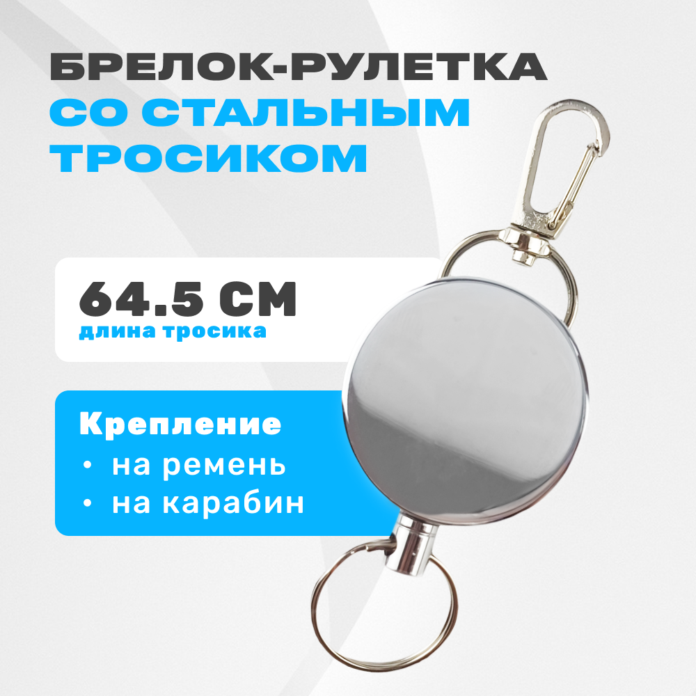 Брелок ретрактор с карабином, метал, серебряный 379 ₽