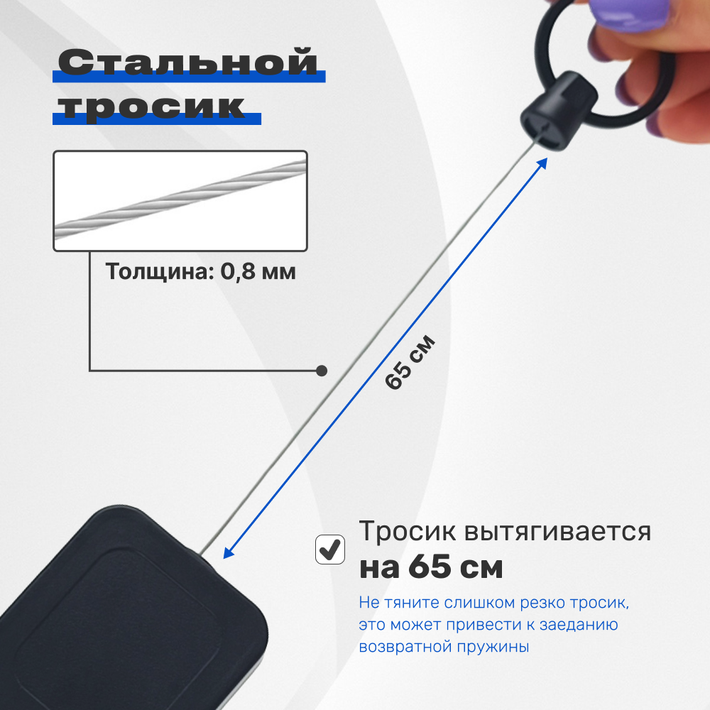 Брелок ретрактор с карабином, черный 299 ₽