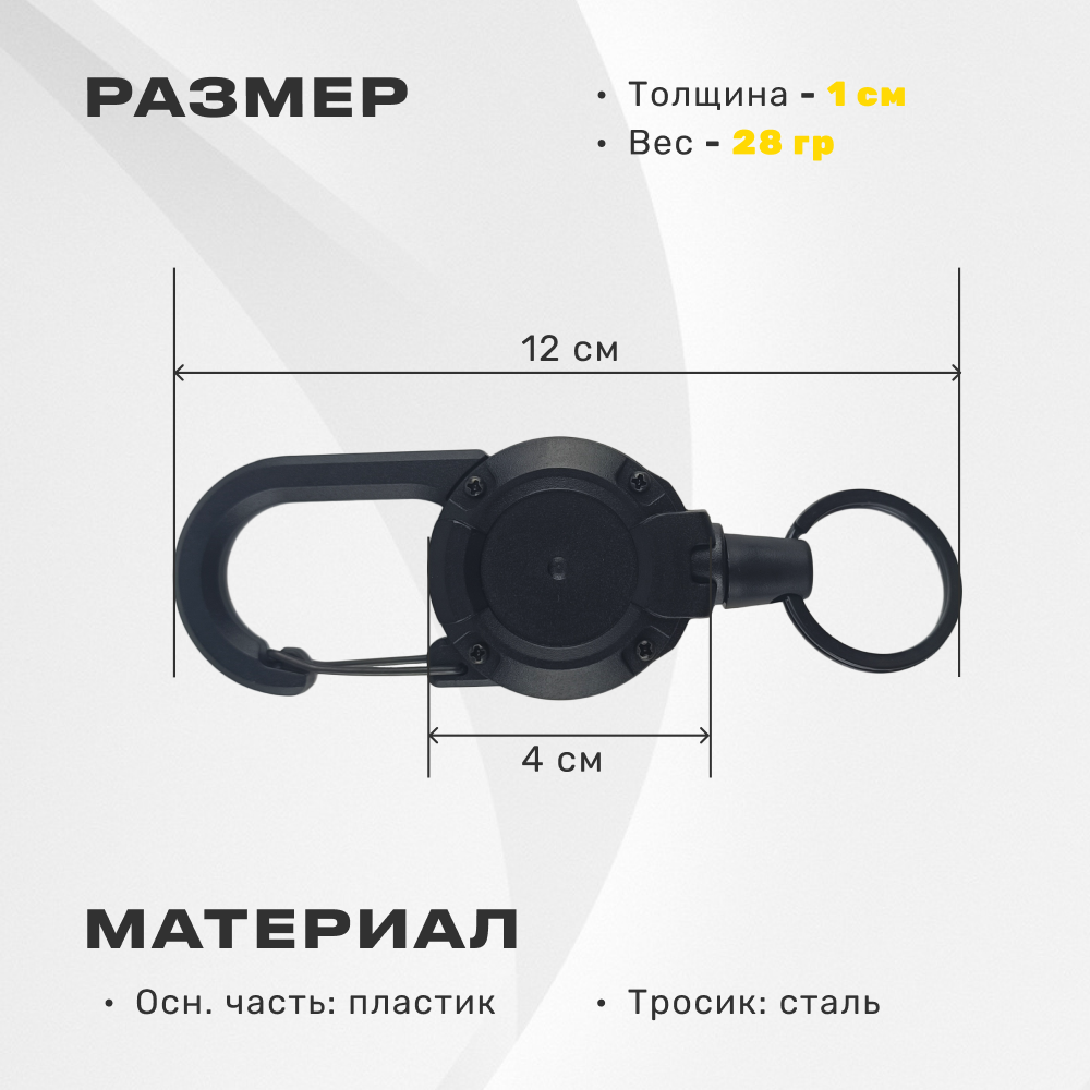 Брелок ретрактор с ремешком и карабином, пластик, черный 439 ₽