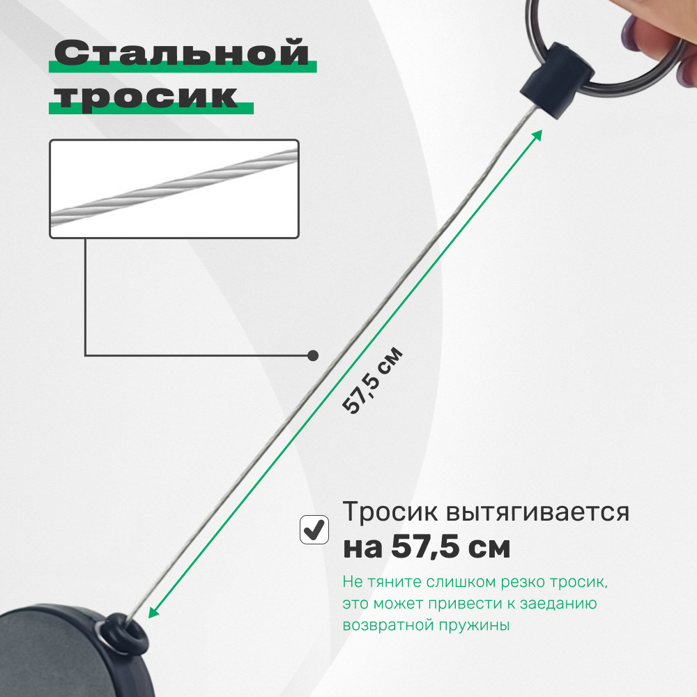 Брелок ретрактор с ремешком и карабином, пластик, черный 439 ₽
