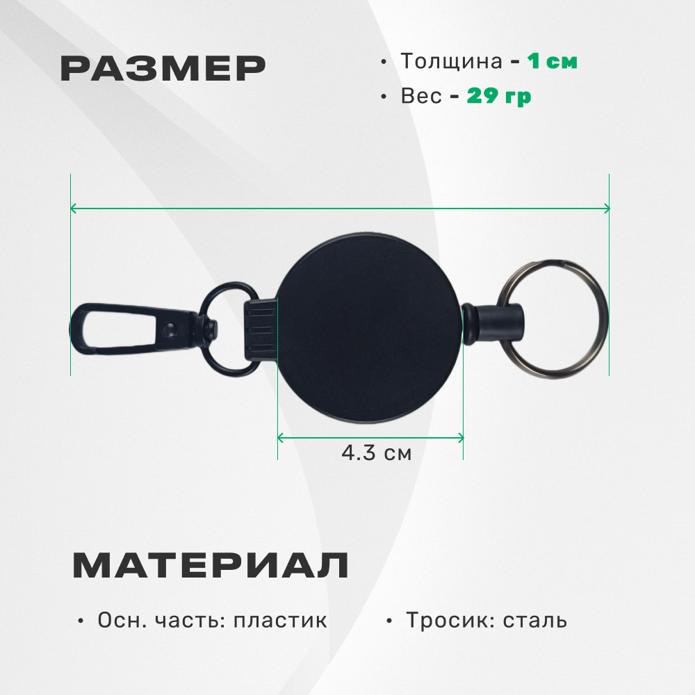 Брелок ретрактор с карабином, черный 299 ₽