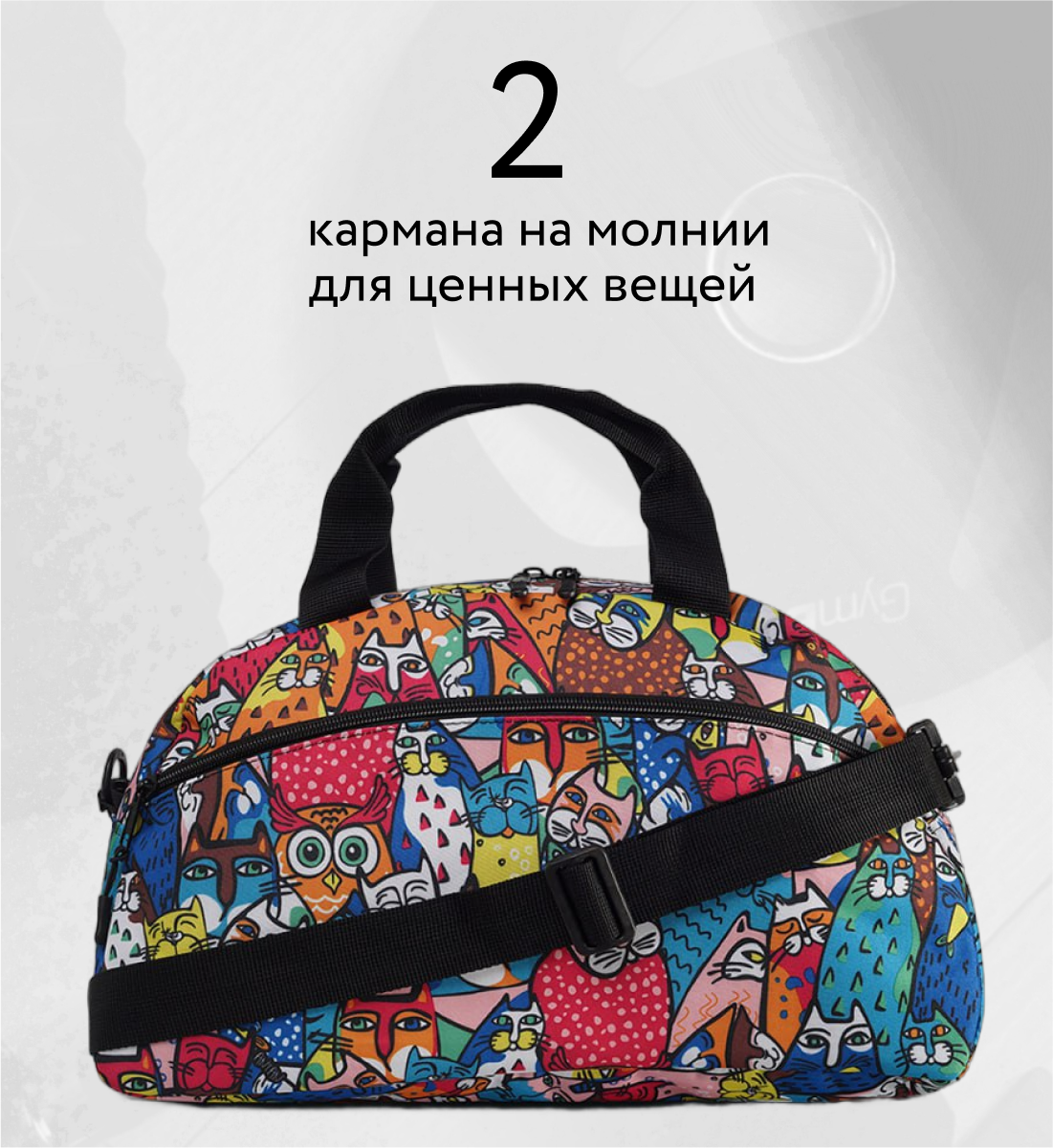 Сумка спортивная женская, мужская, ANTAN 2-322, коты цветные, мультиколор 1 169 ₽