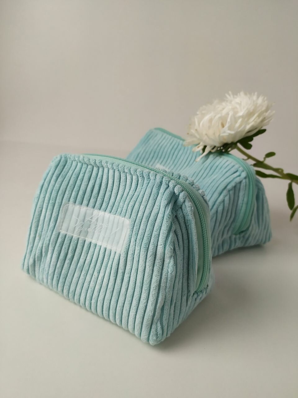 Косметичка вельветовая маленькая, лазурный 380 ₽