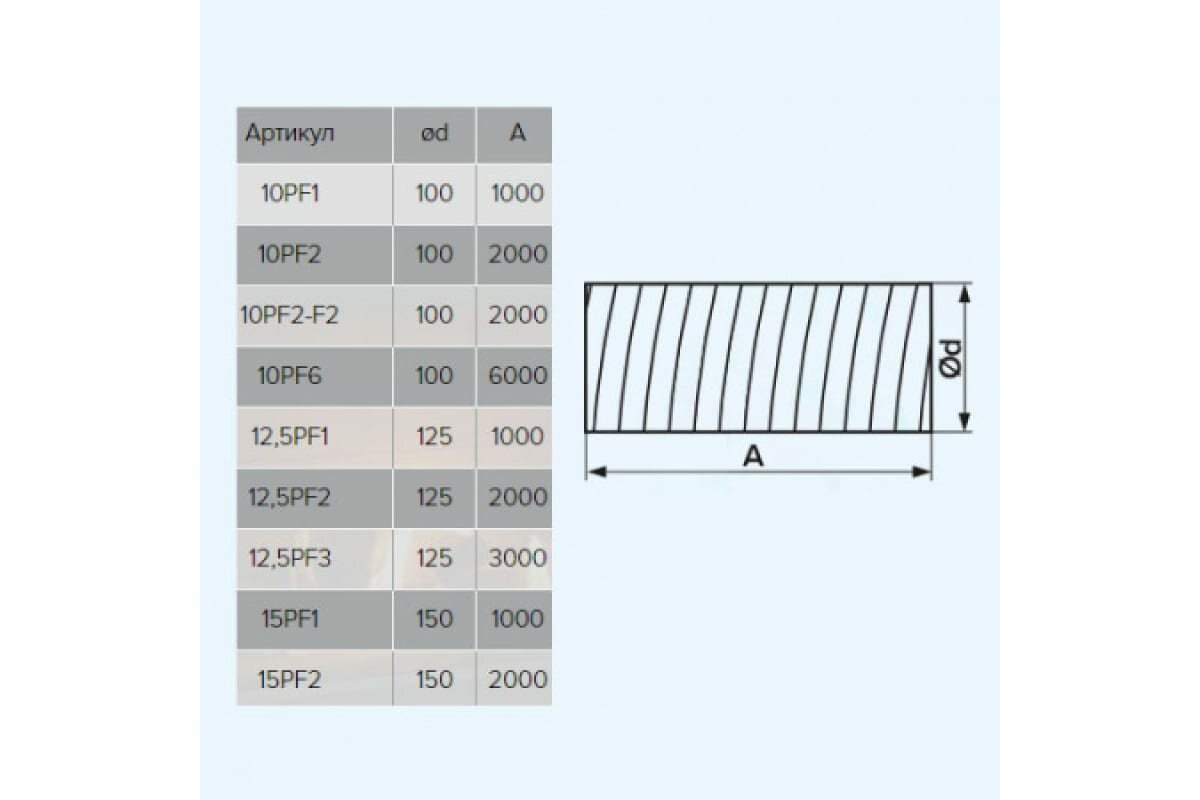 Круглый гибкий воздуховод ERA 15PF 150 мм 1000 мм информация: