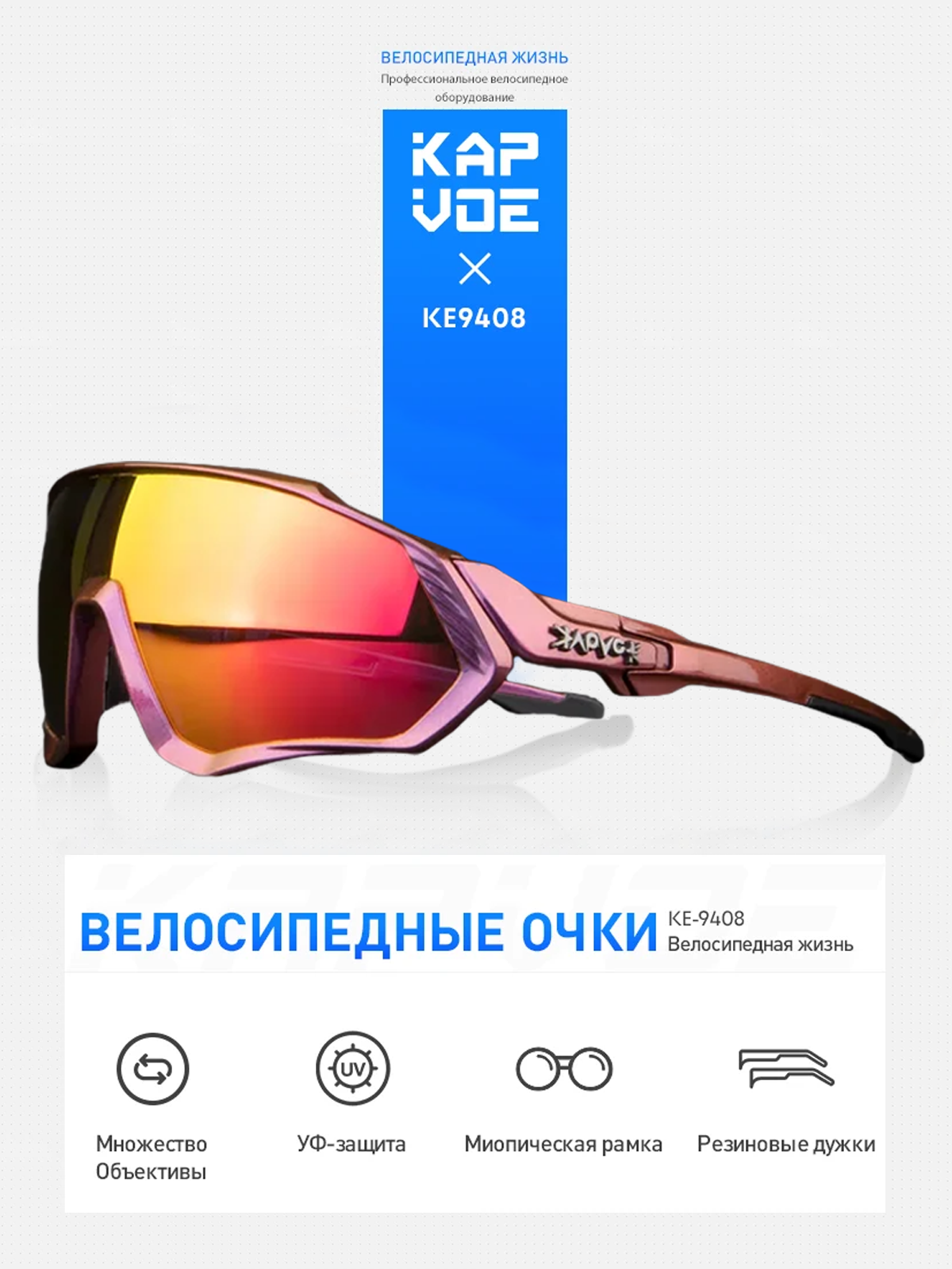Очки спортивные солнцезащитные для мужчин и женщин Kapvoe для велосипеда, туризма, бега, лыжероллеров, лыж, цвет фиолетовый синий, UV400 2 299 ₽