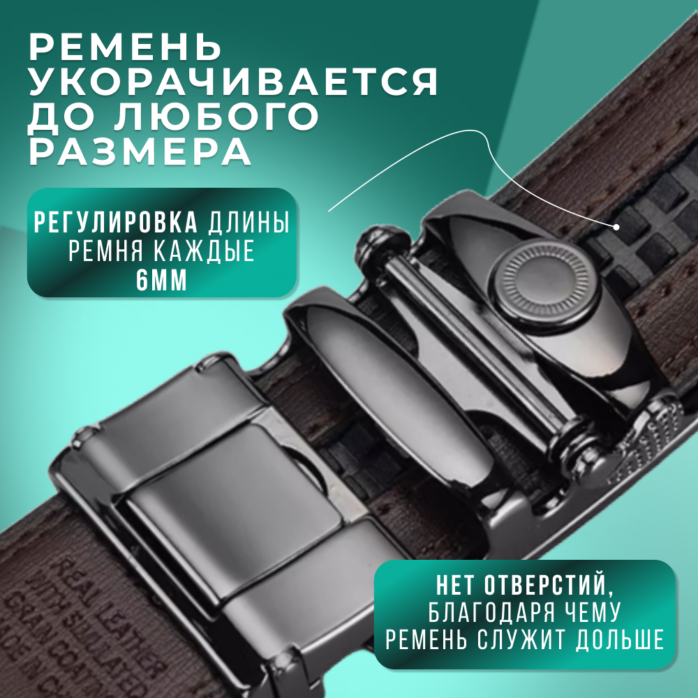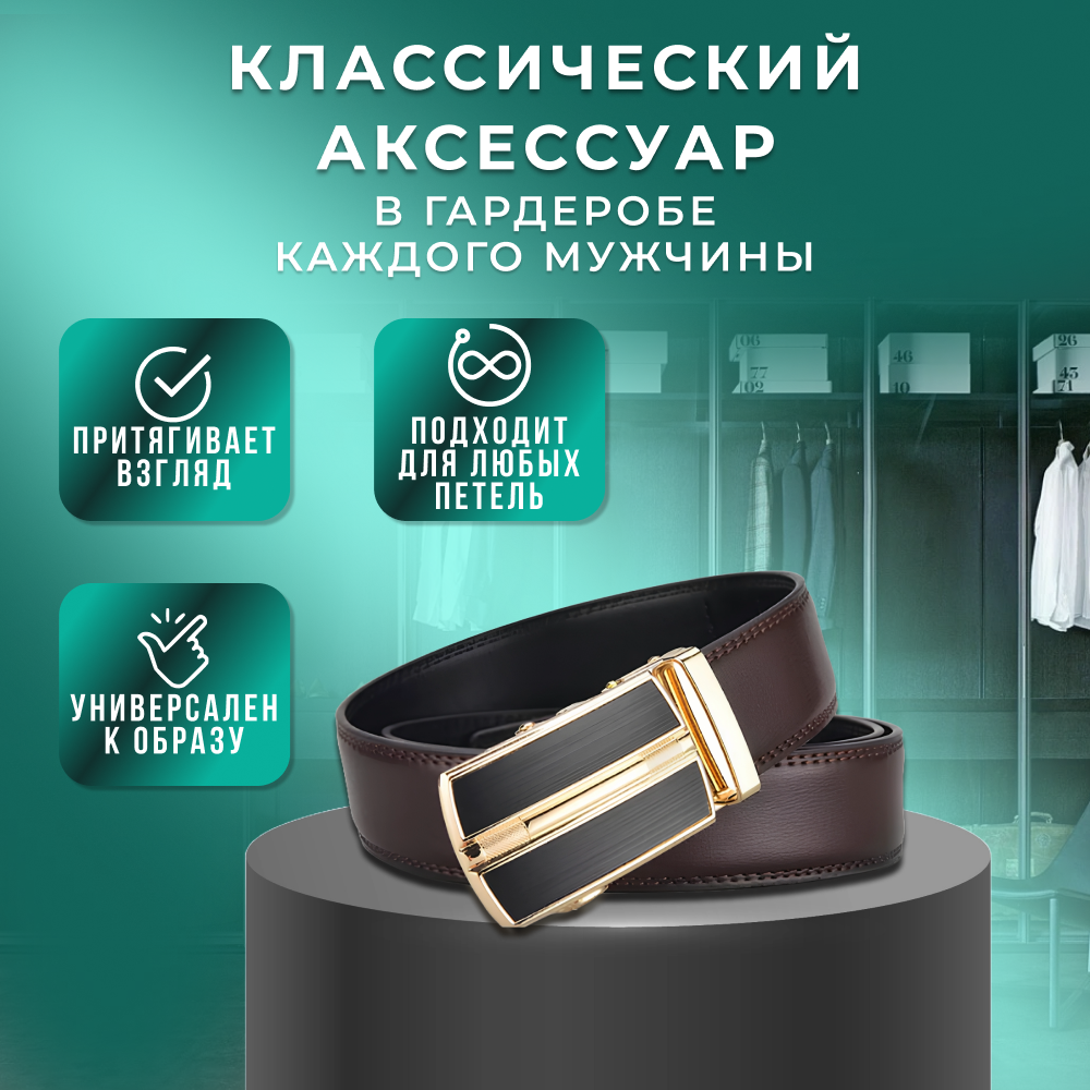 Ремень автоматический классический / Ремень мужской натуральная кожа / Ремень мужской повседневный для брюк и для джинсов