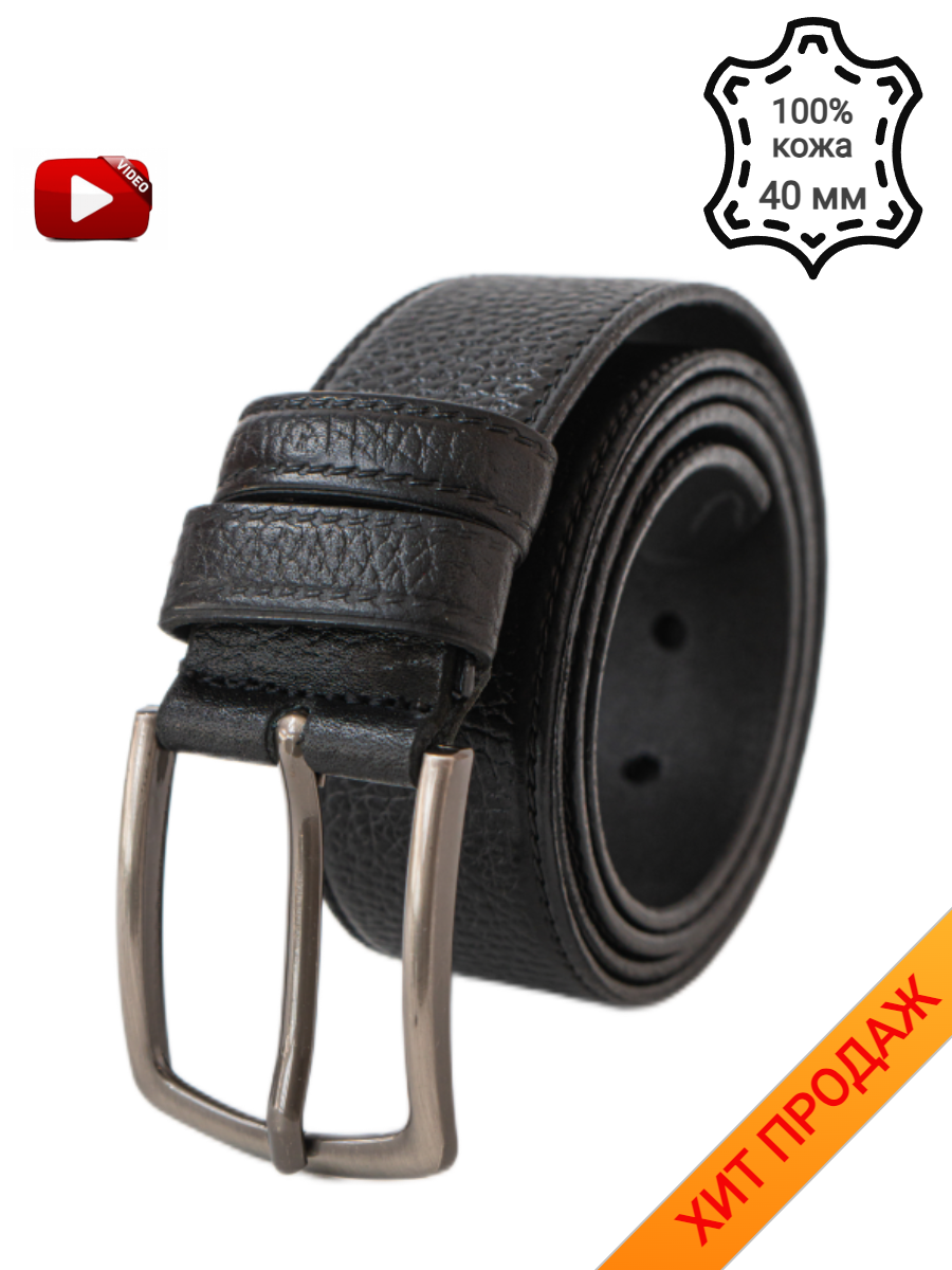 Ремень мужской "Кожаный прошитый" с пряжкой из натуральной кожи, черный, ширина 4 см 1 112 ₽