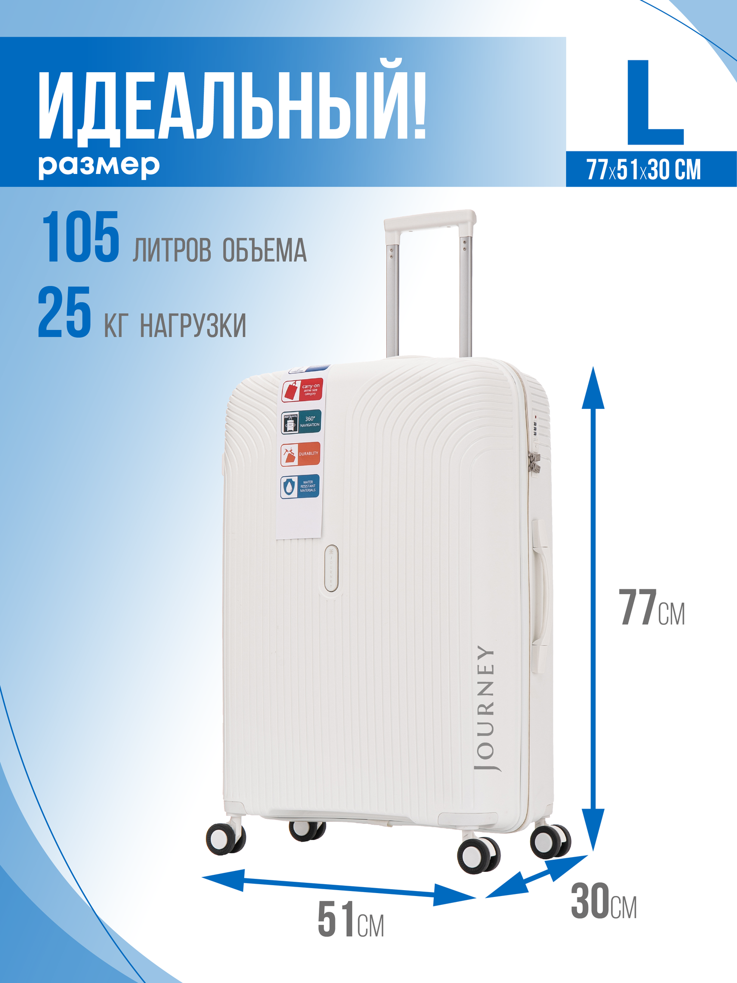 Чемодан JOURNEY, полипропилен, прочный, износостойкий, водонепроницаемый, 105 л, размер L, Белый 6 690 ₽