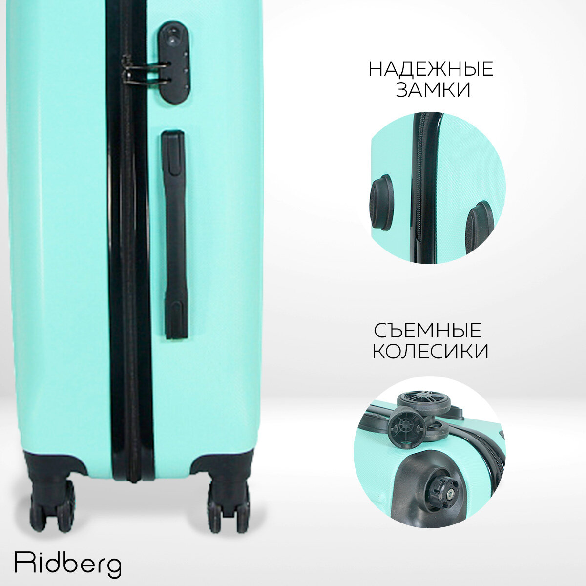 Чемодан Ridberg Discover размер M.(материал: ABS-пластик, кодовый замок, съемные колесики, мятный) 5 290 ₽