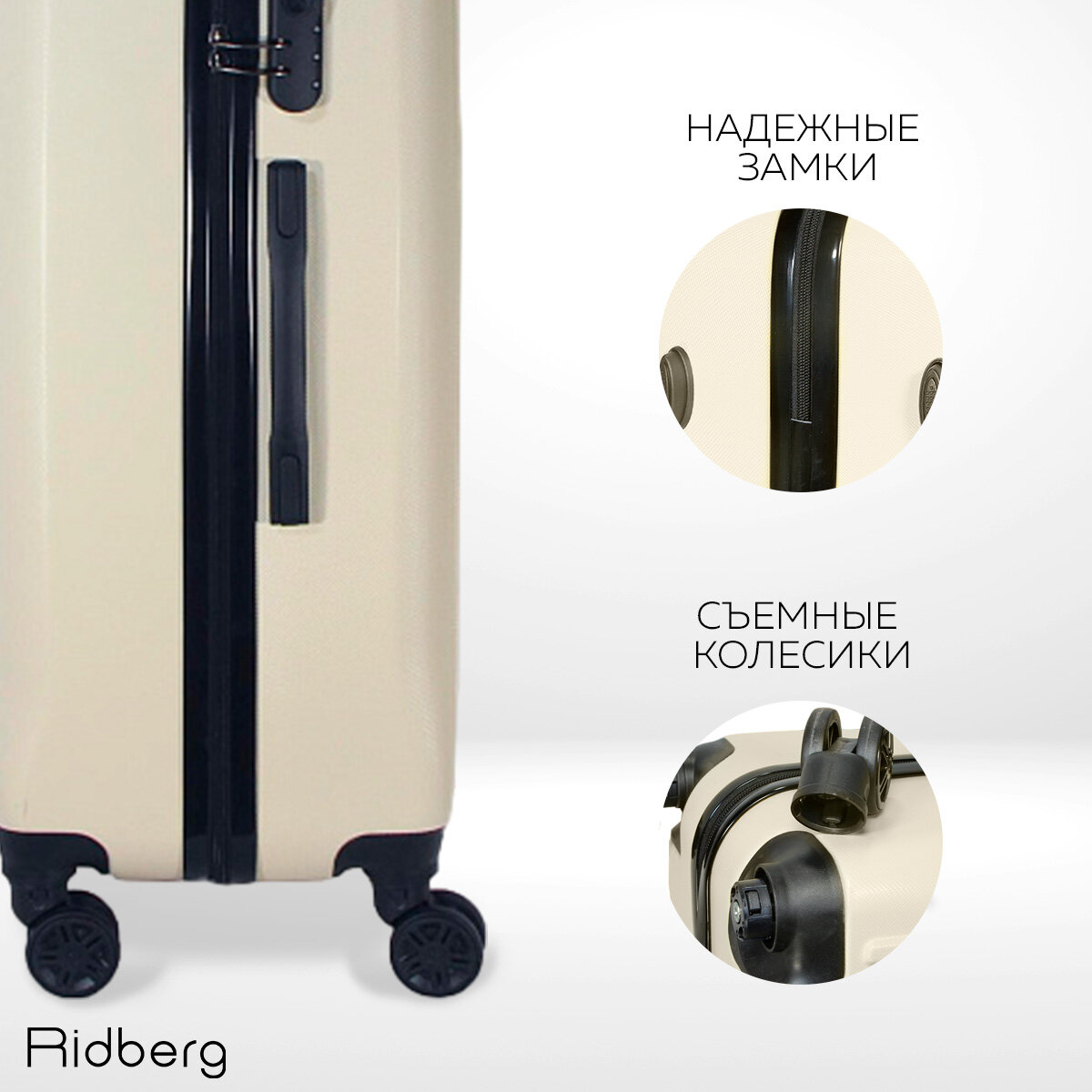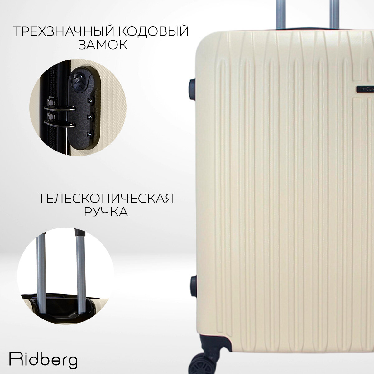 Чемодан Ridberg Discover размер L.(материал: ABS-пластик, кодовый замок, съемные колесики, белый) 5 790 ₽