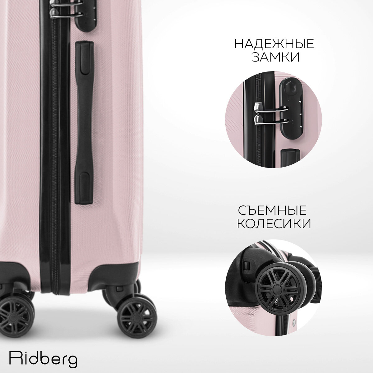 Чемодан RIDBERG, размер L, светло-розовый информация: