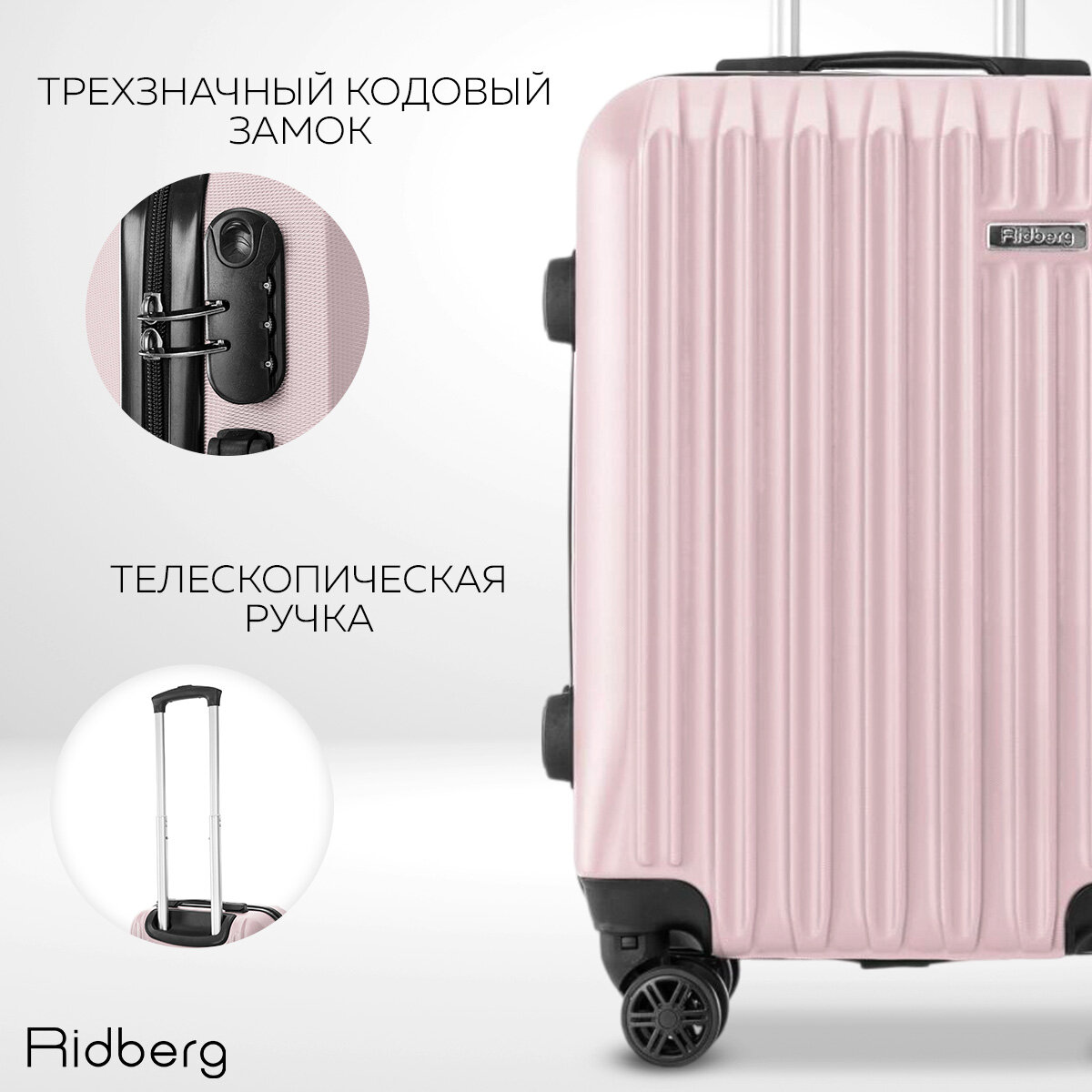 Чемодан Ridberg Discover размер S.(материал: ABS-пластик, кодовый замок, съемные колесики, светло-розовый) 4 690 ₽