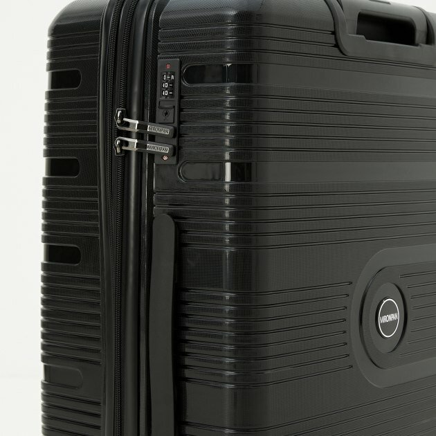Чемодан из полипропилена MIRONPAN, средний размер М+, 65 см, 80 л, увеличение +4 см, черный