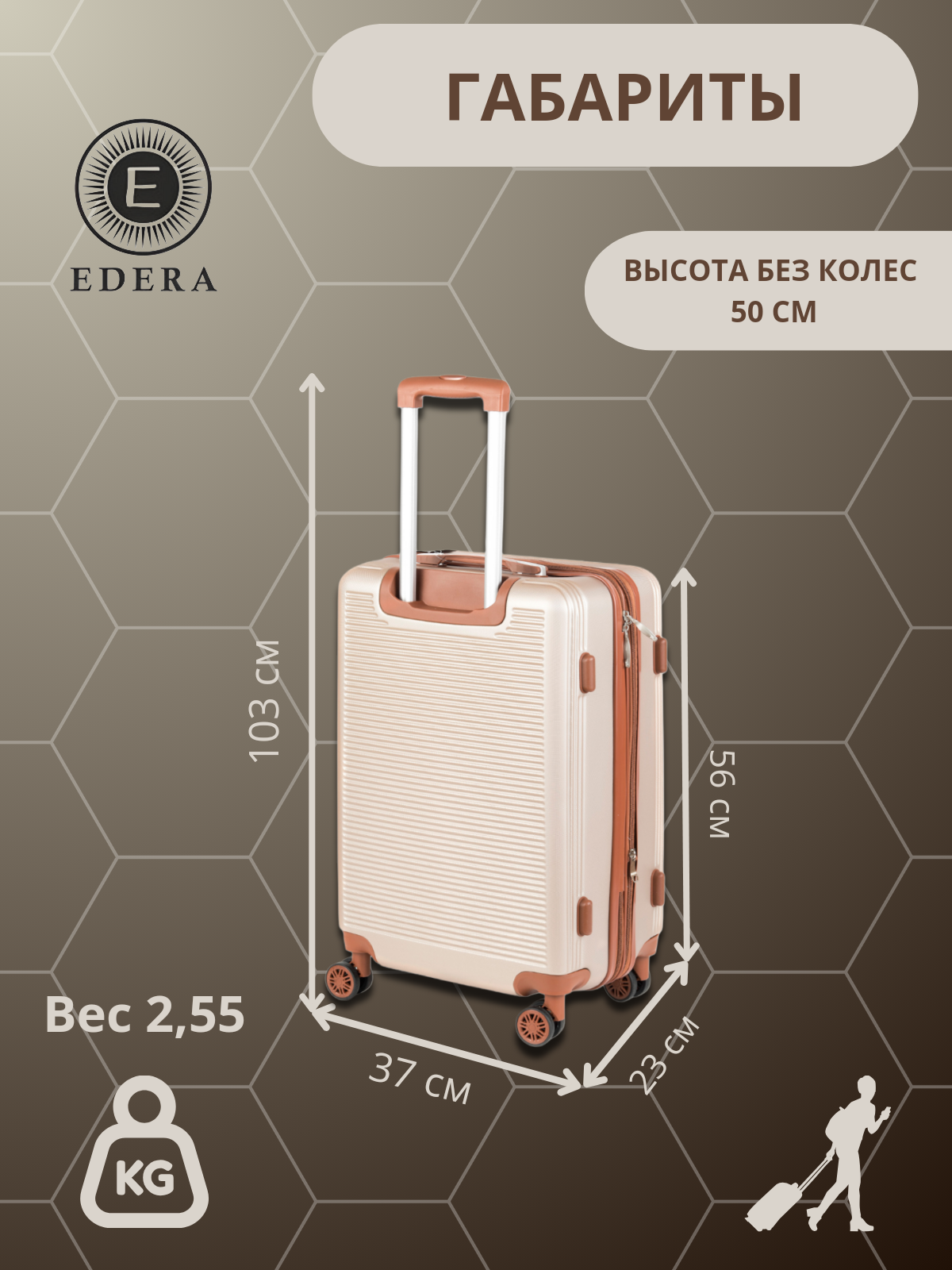 Чемодан EDERA, 38 л, размер S+, золотистый информация: