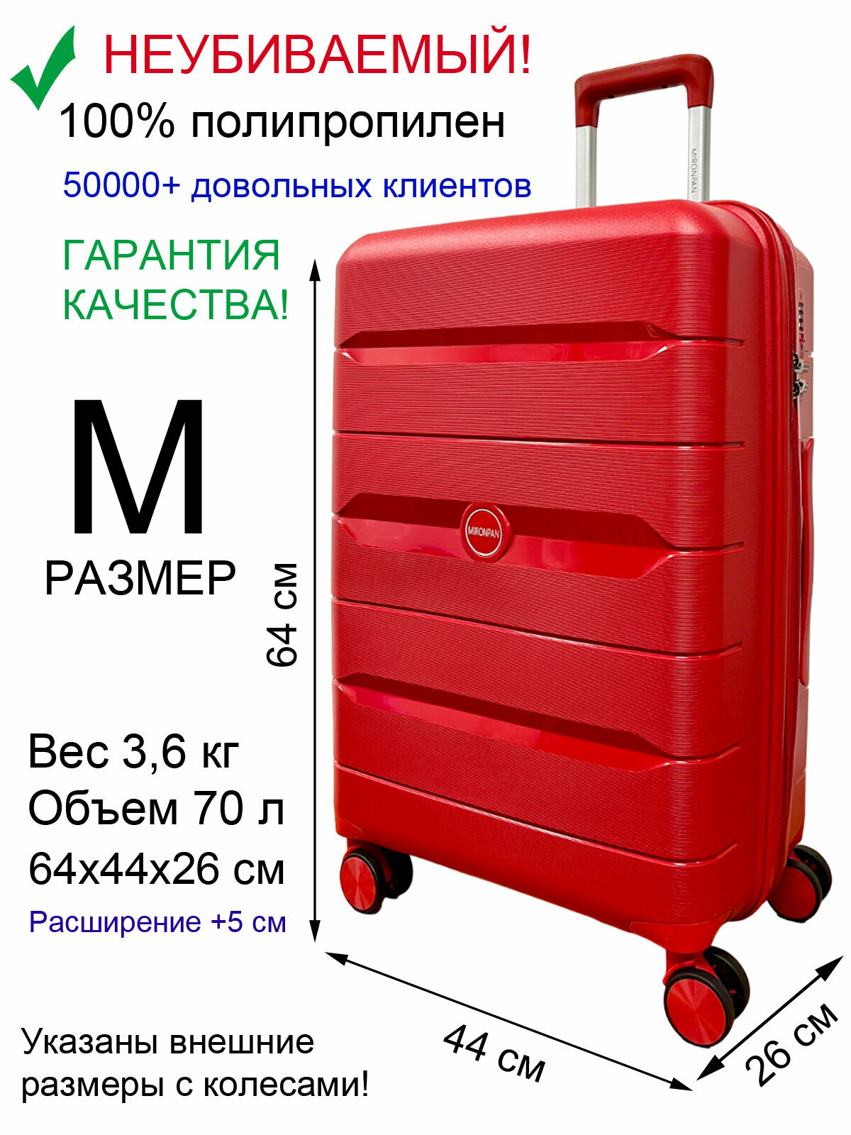 Чемодан из полипропилена MIRONPAN, средний М, 64 см, 70 л, увеличение +5 см, красный 7 800 ₽