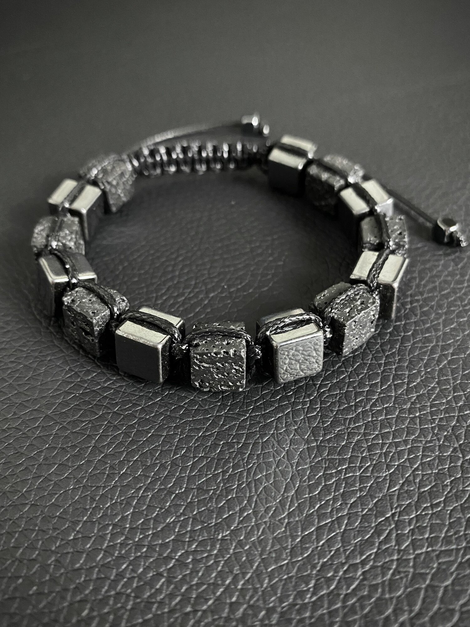 Браслет мужской плетеный из натуральных камней гематит и лава куб 18-22см 2 800 ₽