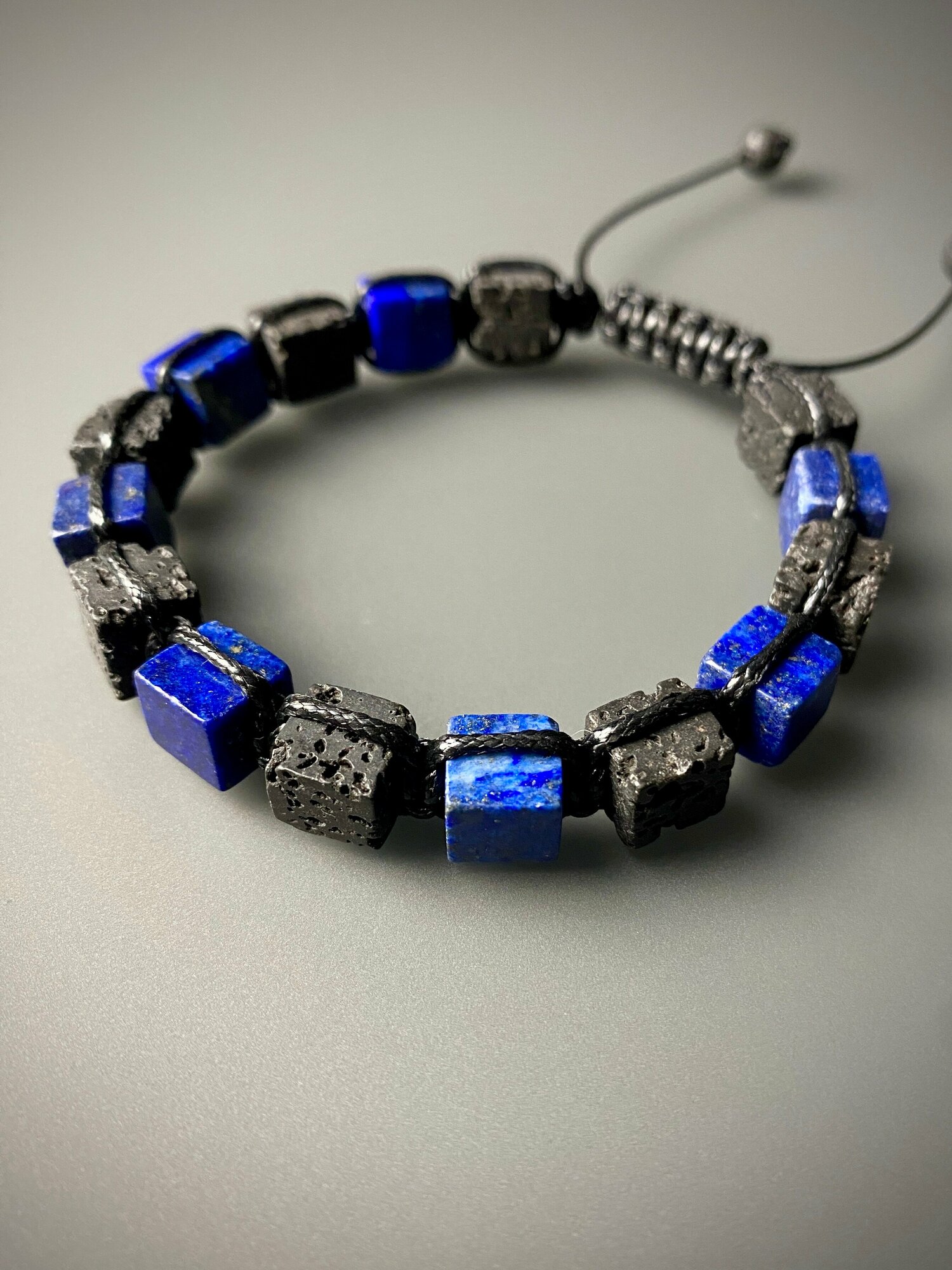 Браслет из натуральных камней лазурит и лава куб квадрат мужской в подарочной упаковке 2 500 ₽