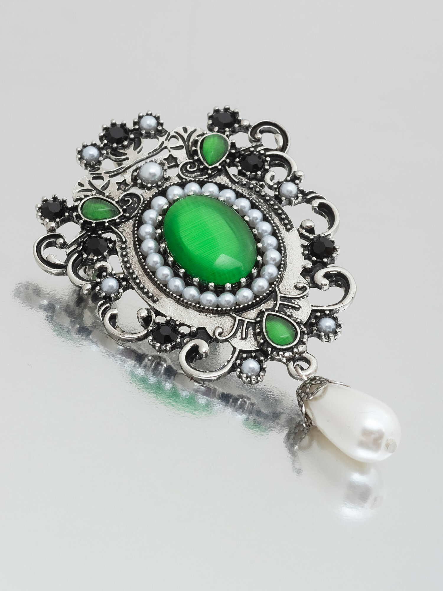 Брошь ЖемАрт, зеленый, серебряный, белый информация: