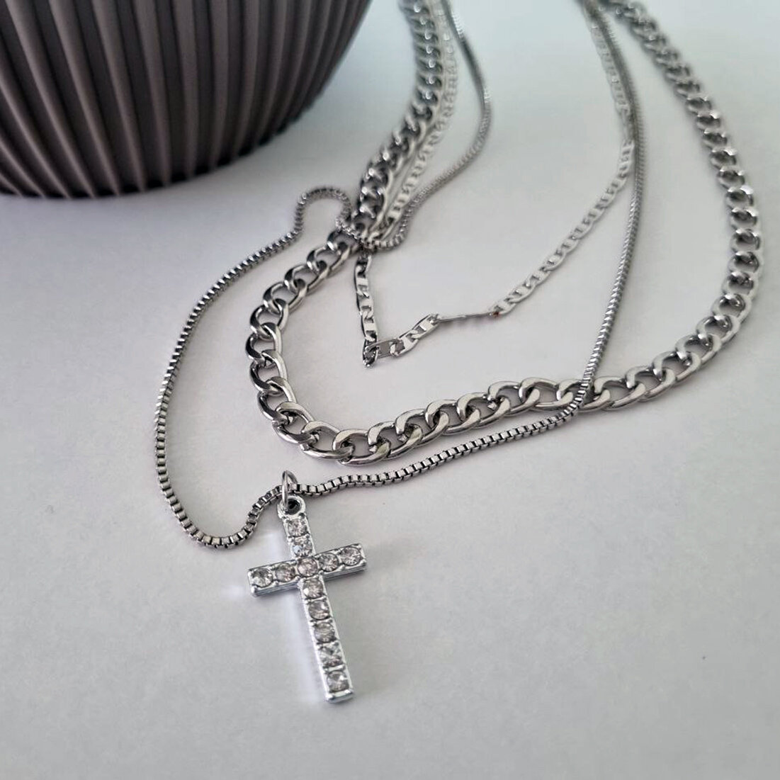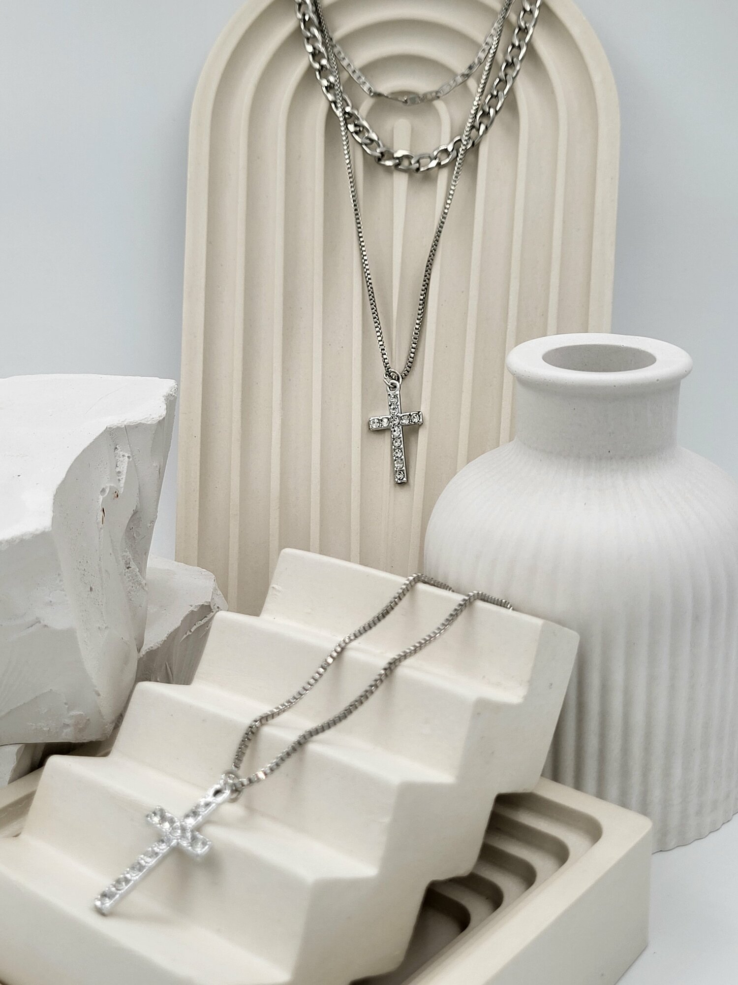 | Комплектация | 3 цепочки разного плетения и кулон-крестик |