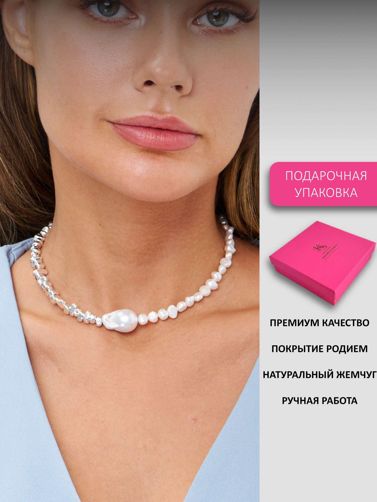 10 цен на Чокер KATERINA SHEPELENKO, жемчуг культивированный, жемчуг барочный, жемчуг пресноводный, жемчуг пресноводный культивированный, гематит, длина 36 см, серебряный, белый, серый