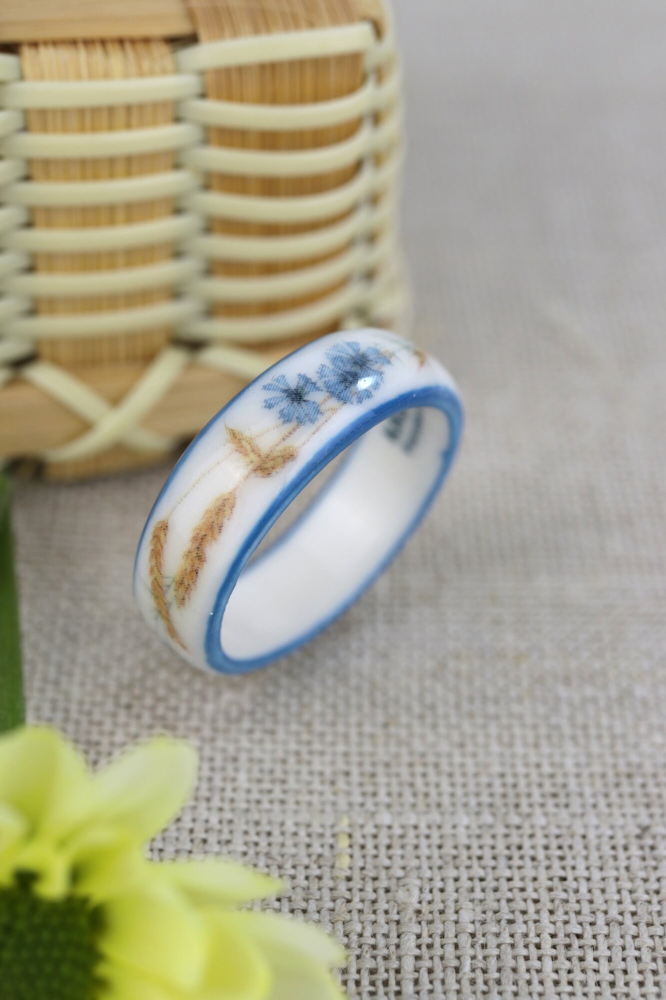 Кольцо фарфоровое женское "Васильки и колоски"#19 1 188 ₽