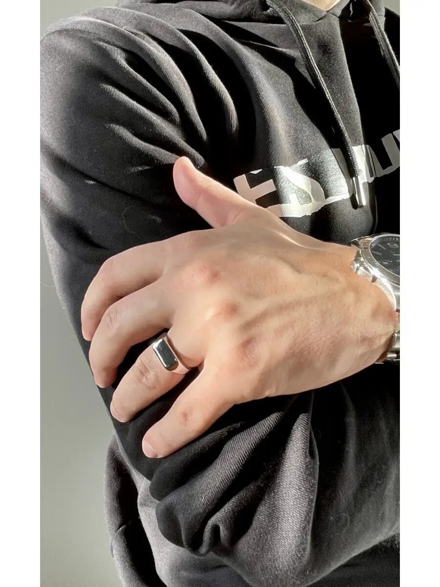 Широкое квадратное мужское кольцо из стали, ширина 9 мм. 501 ₽