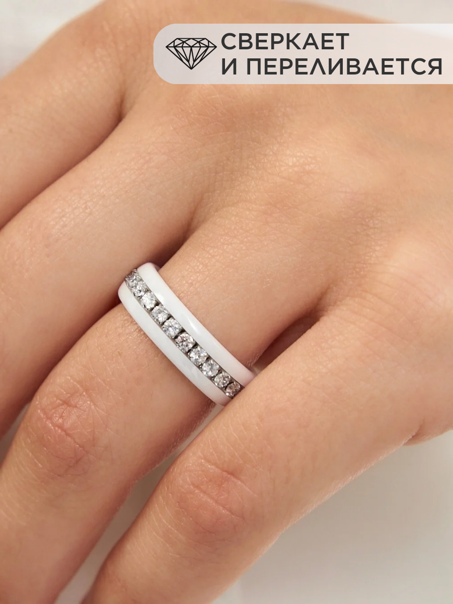 Белое кольцо из керамики с фианитами 18,5 размер 804 ₽