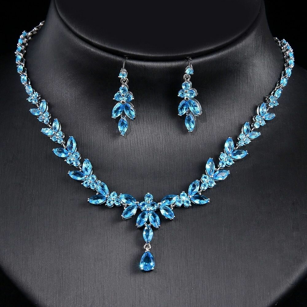 Отзывы на Комплект бижутерии Italina Rigant: серьги, колье, искусственный камень, размер колье/цепочки 44 см, голубой