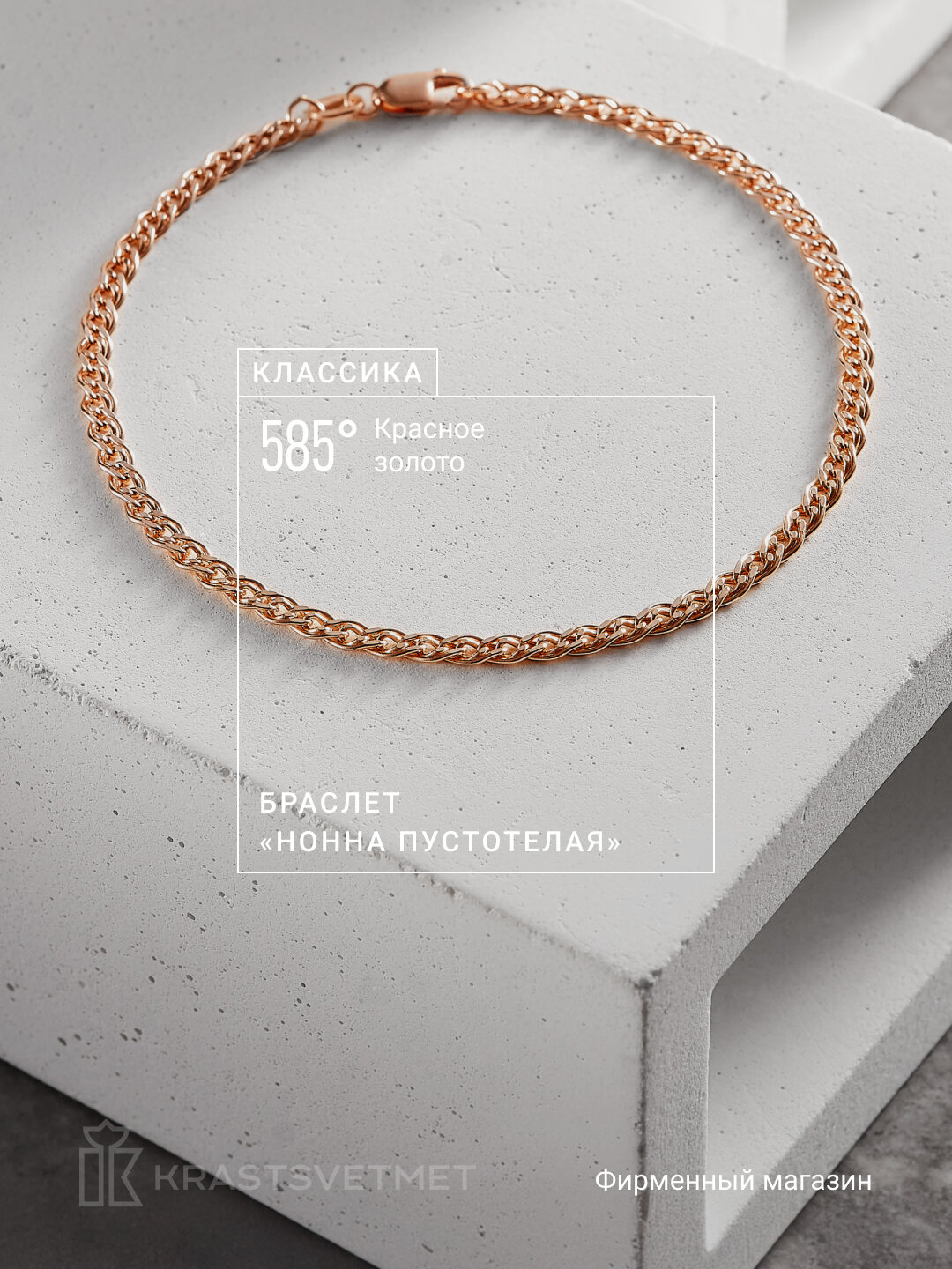 Браслет-цепочка Krastsvetmet, красное золото, 585 проба, длина 20 см. информация: