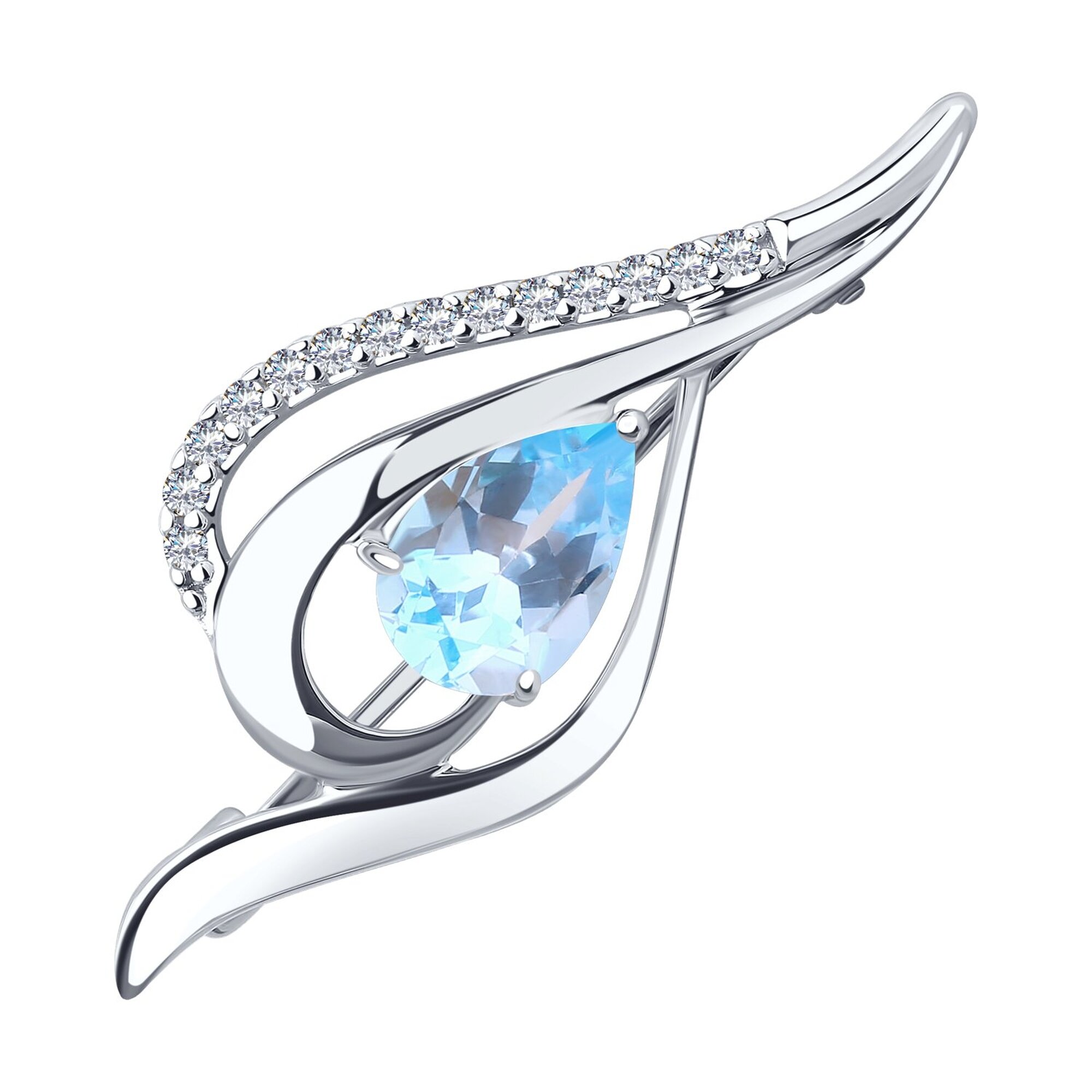 10 цен на Брошь Diamant online, серебро, 925 проба, родирование, топаз, фианит, размер 3.5 см., , голубой