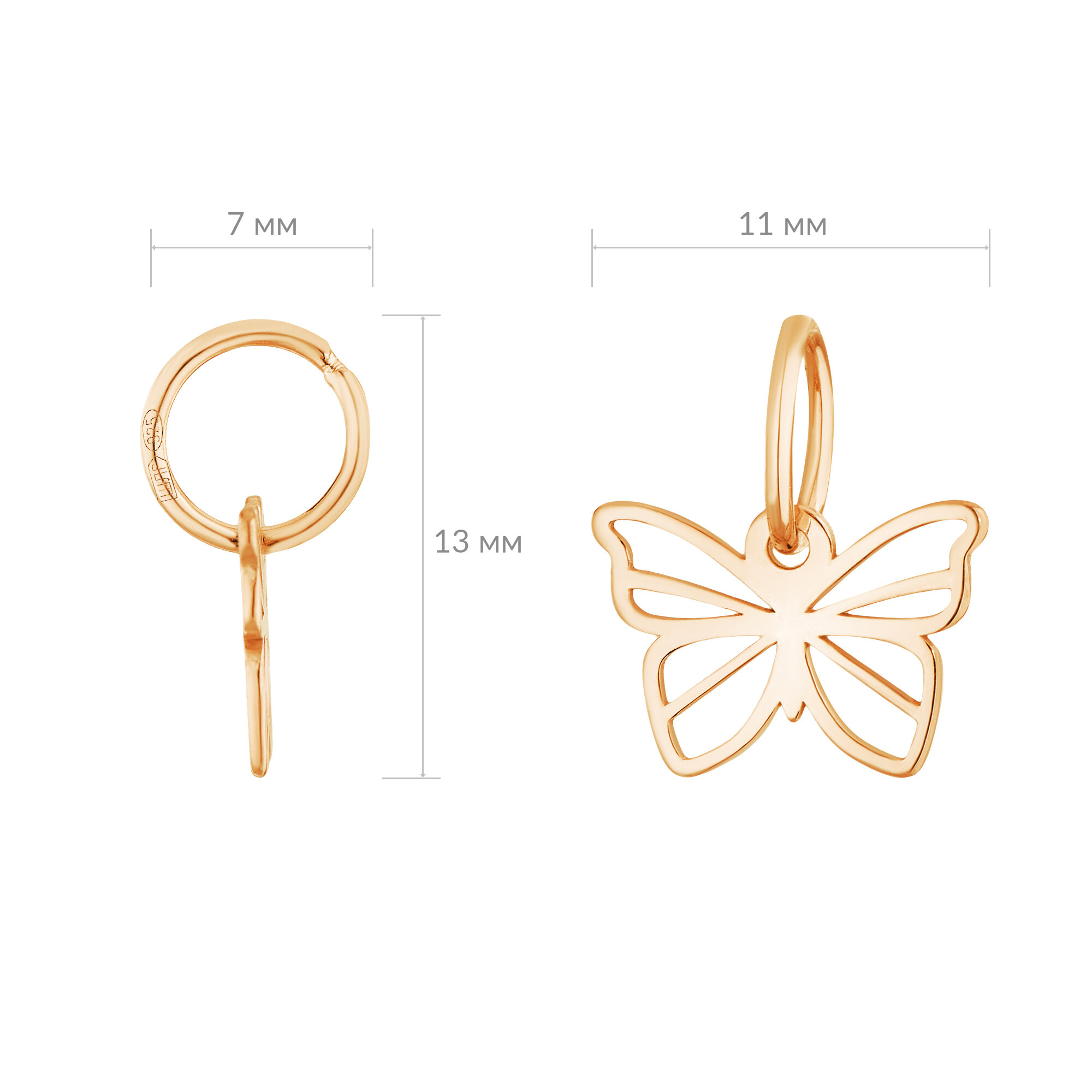 Подвеска серебряная Бабочка, кулон женский, для девочек, ср. вес изделия 0,35 гр, арт. 2035076/91