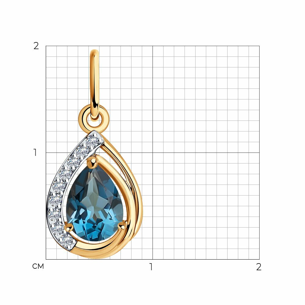 Подвеска Яхонт, красное золото, 585 проба, топаз, фианит, бесцветный, синий информация: