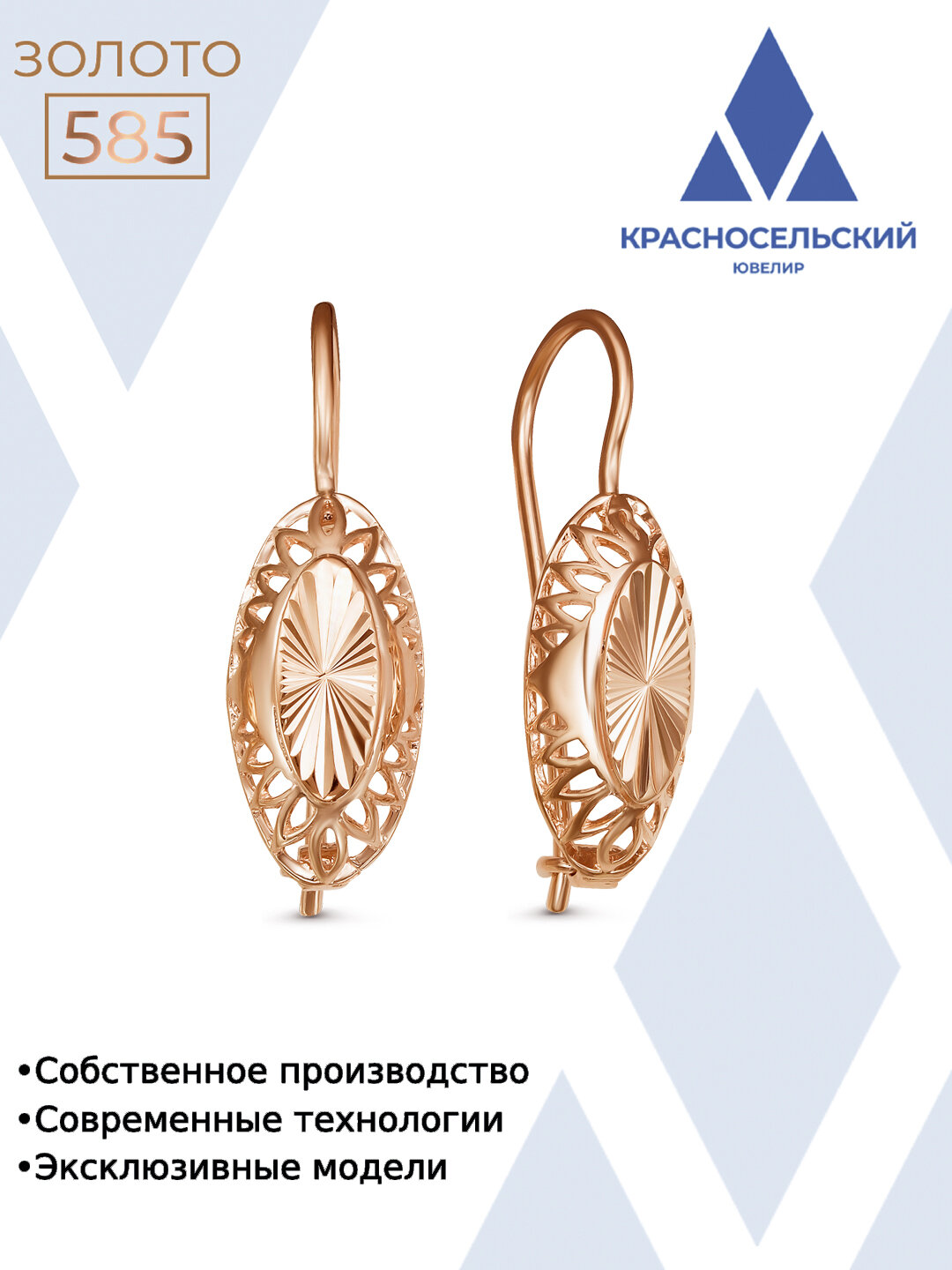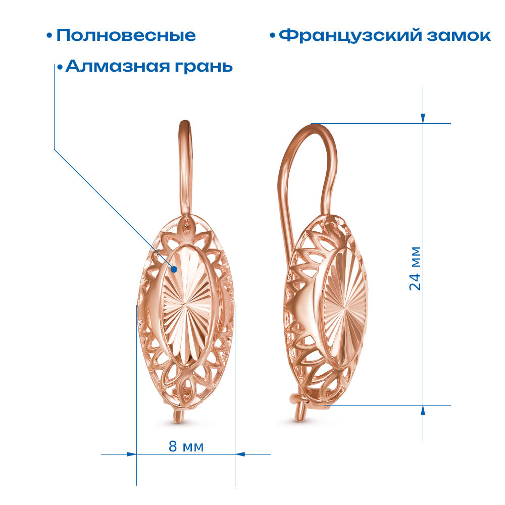 Отзывы на Серьги Красносельский ювелир, красное золото, 585 проба, размер 8 мм, длина 2.04 см