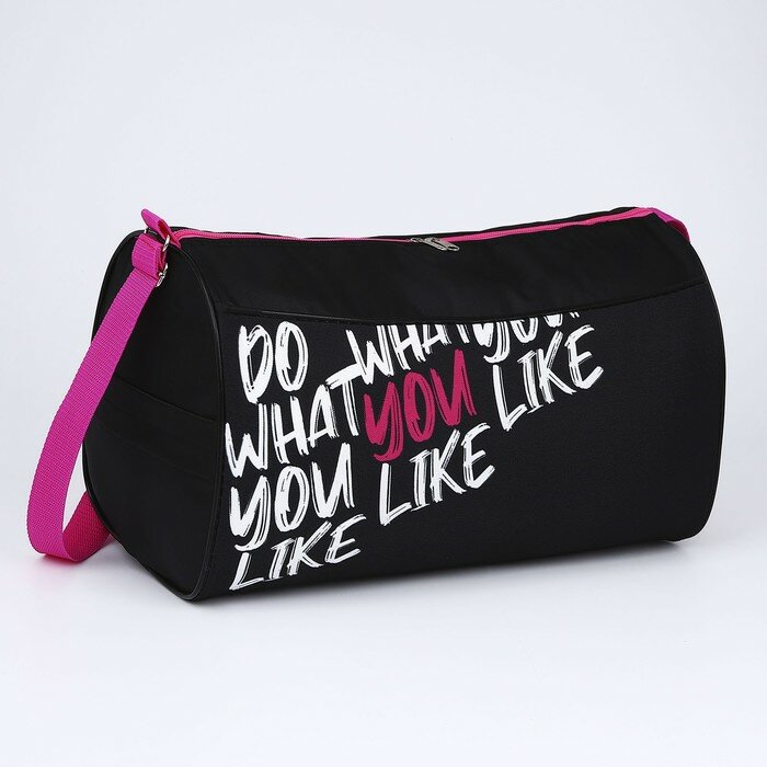 Сумка спортивная на молнии, наружный карман, цвет чёрный/розовый