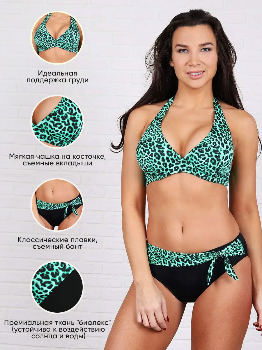Купальник MollenaLayers с леопардовым принтом, размер 48, мятный/черный 3 213 ₽