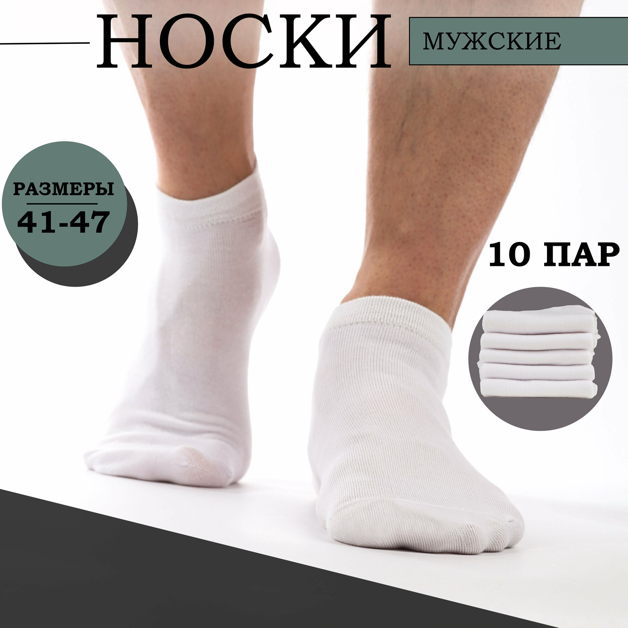 Носки короткие мужские из хлопка. Набор 10 пар. Цвет Белый. Размер 41-47 489 ₽