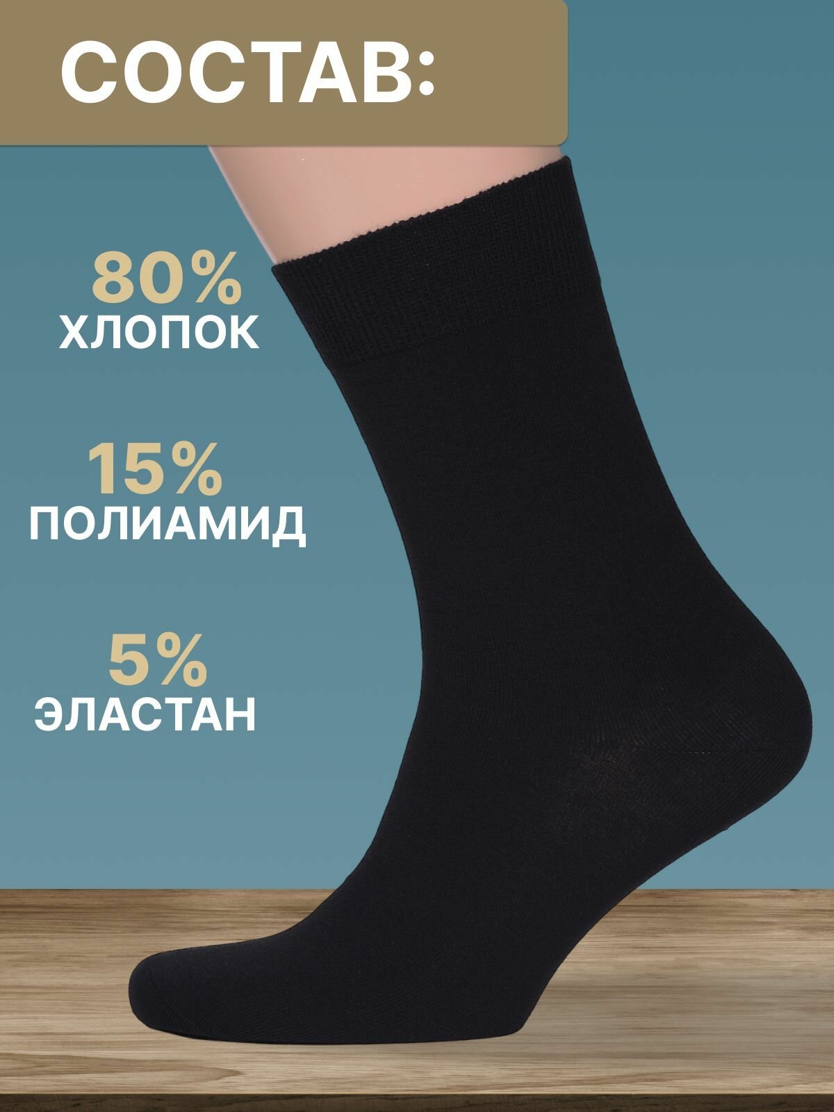 Носки МАСТЕР ХЛОПКА CA3378-5/белый, черный, голубой, светло-серый, темно-серый41-43, размер 41-43, черный, белый, серый, голубой